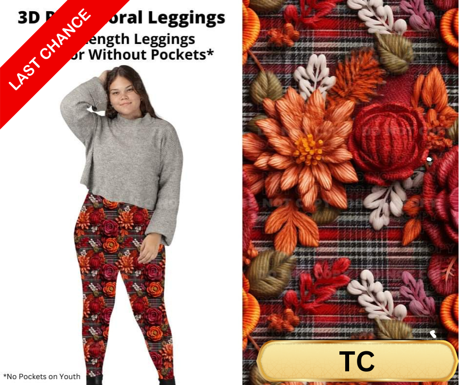 3D Plaid Floral Full Length Leggings w/ Pockets