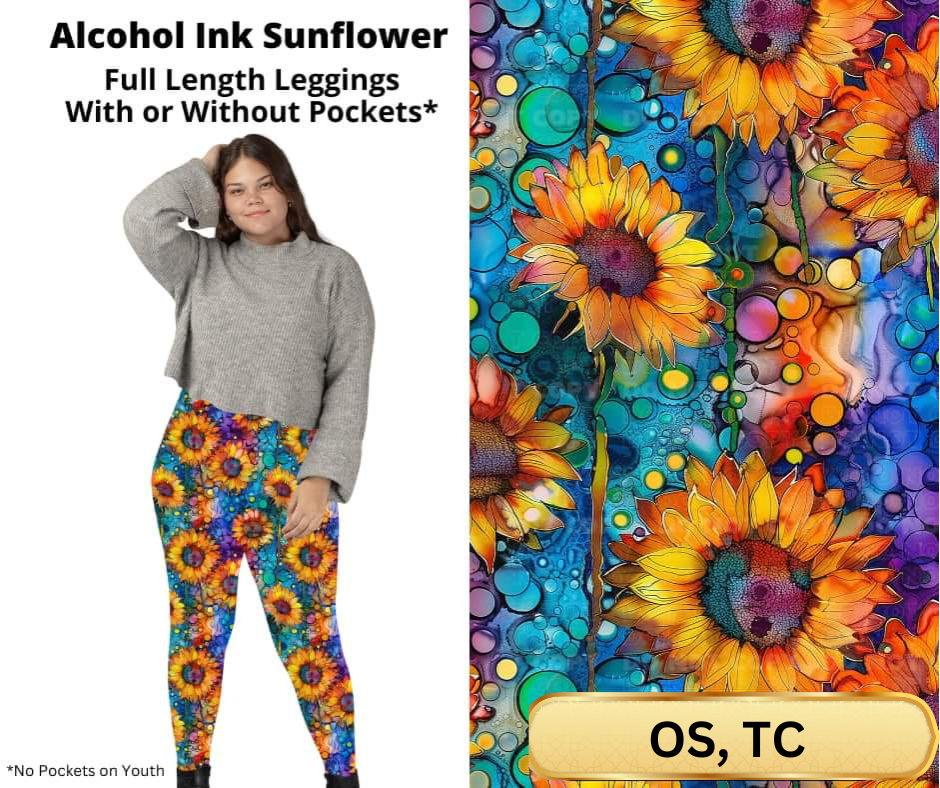 Alcohol Ink Sunflower Full Length Leggings w/ Pockets