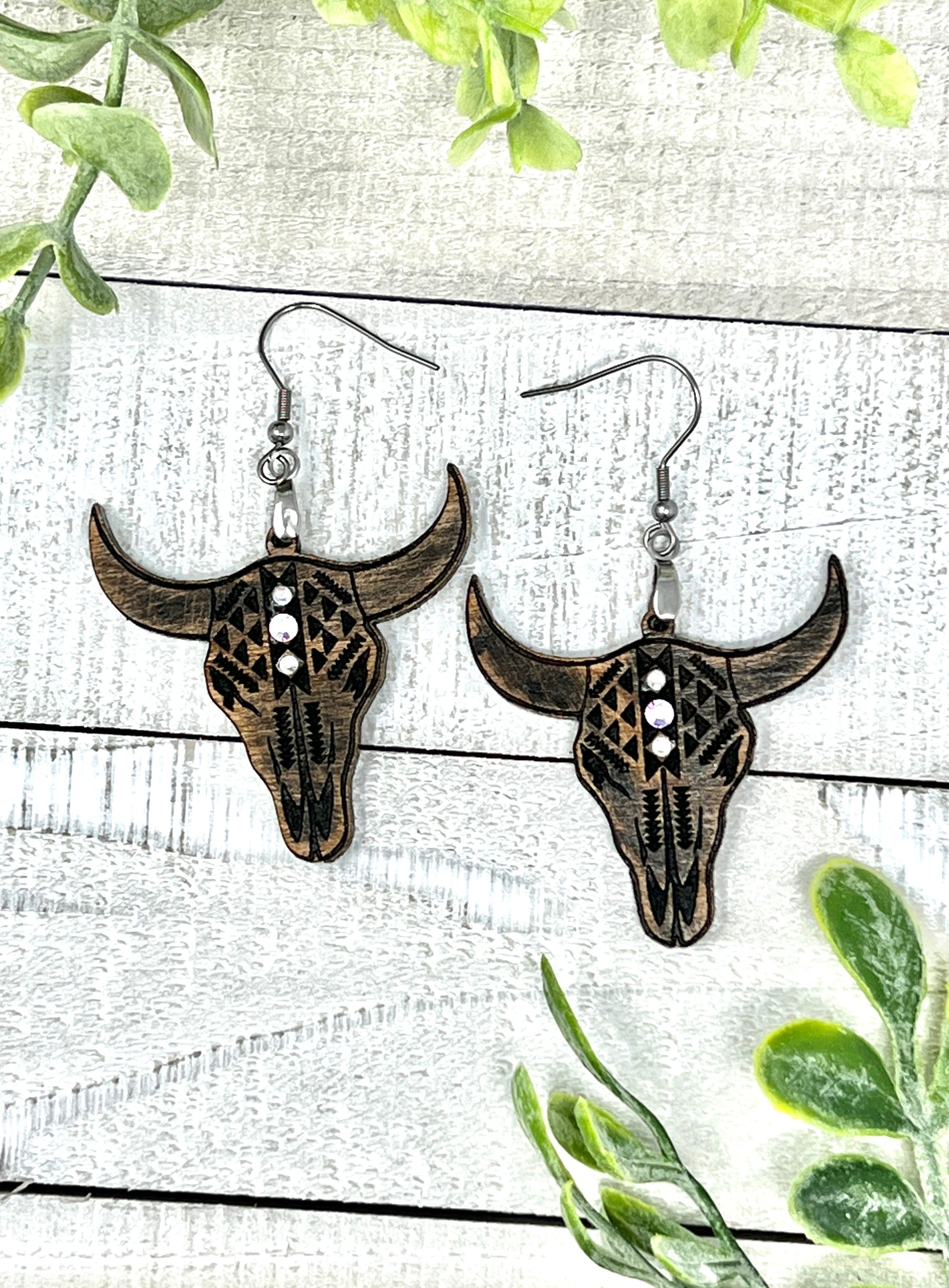 Aztec Bull Skull Dark Rustic - Handcrafted Earrings