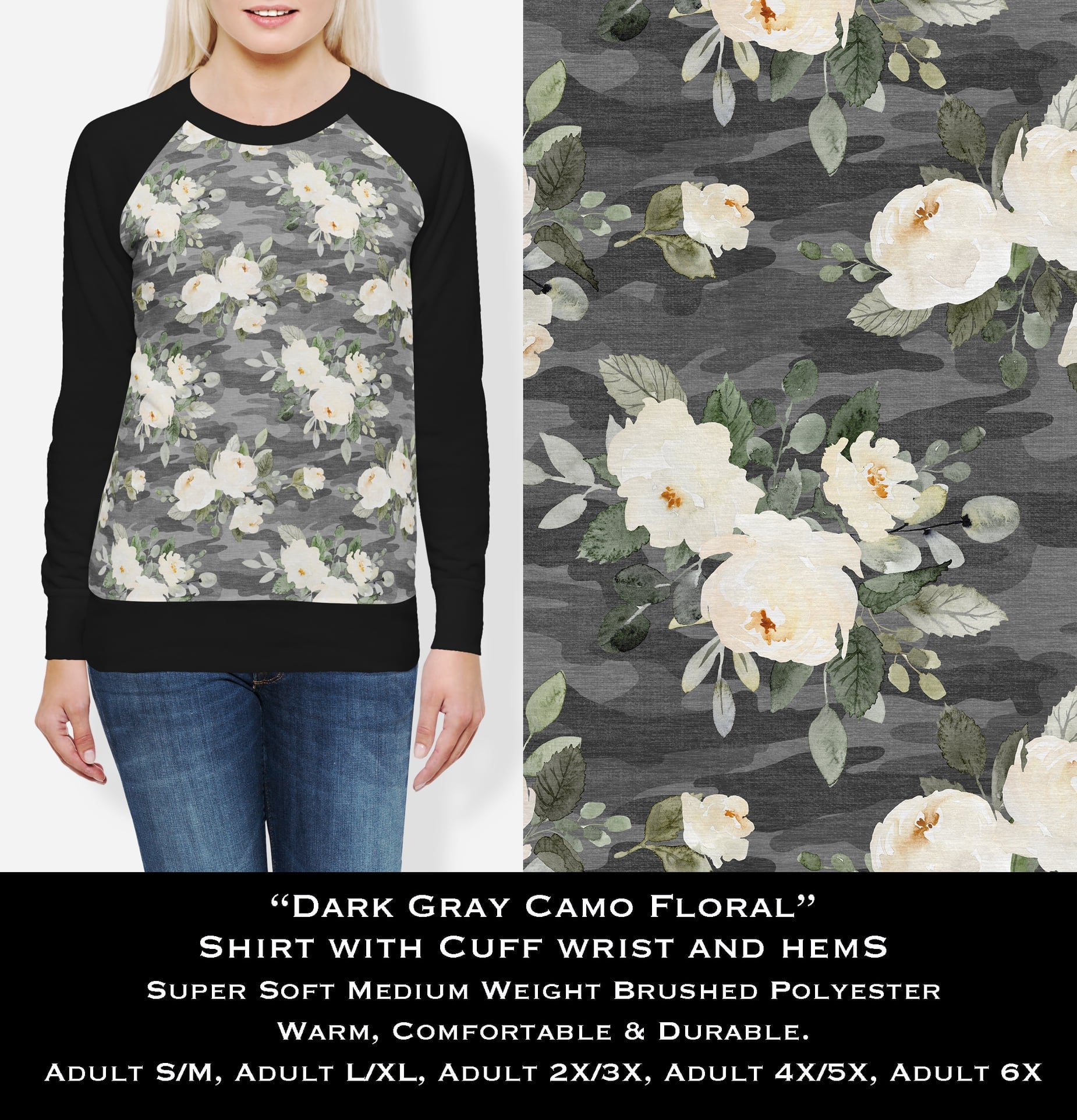 Dark Gray Camo Floral - Cozy Comfort Sweatshirt