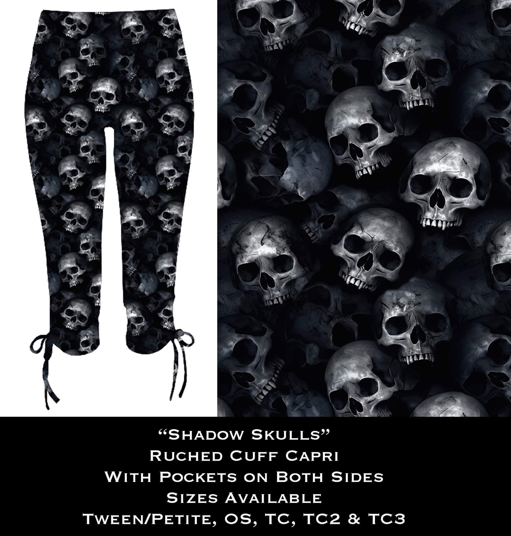 Shadow Skulls Ruched Cuff Capris with Side Pockets
