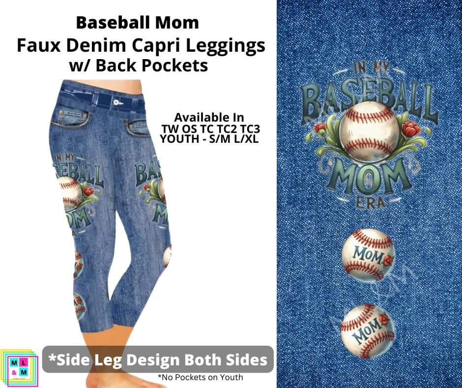 Baseball Mom Capri Faux Denim w/ Side Leg Designs