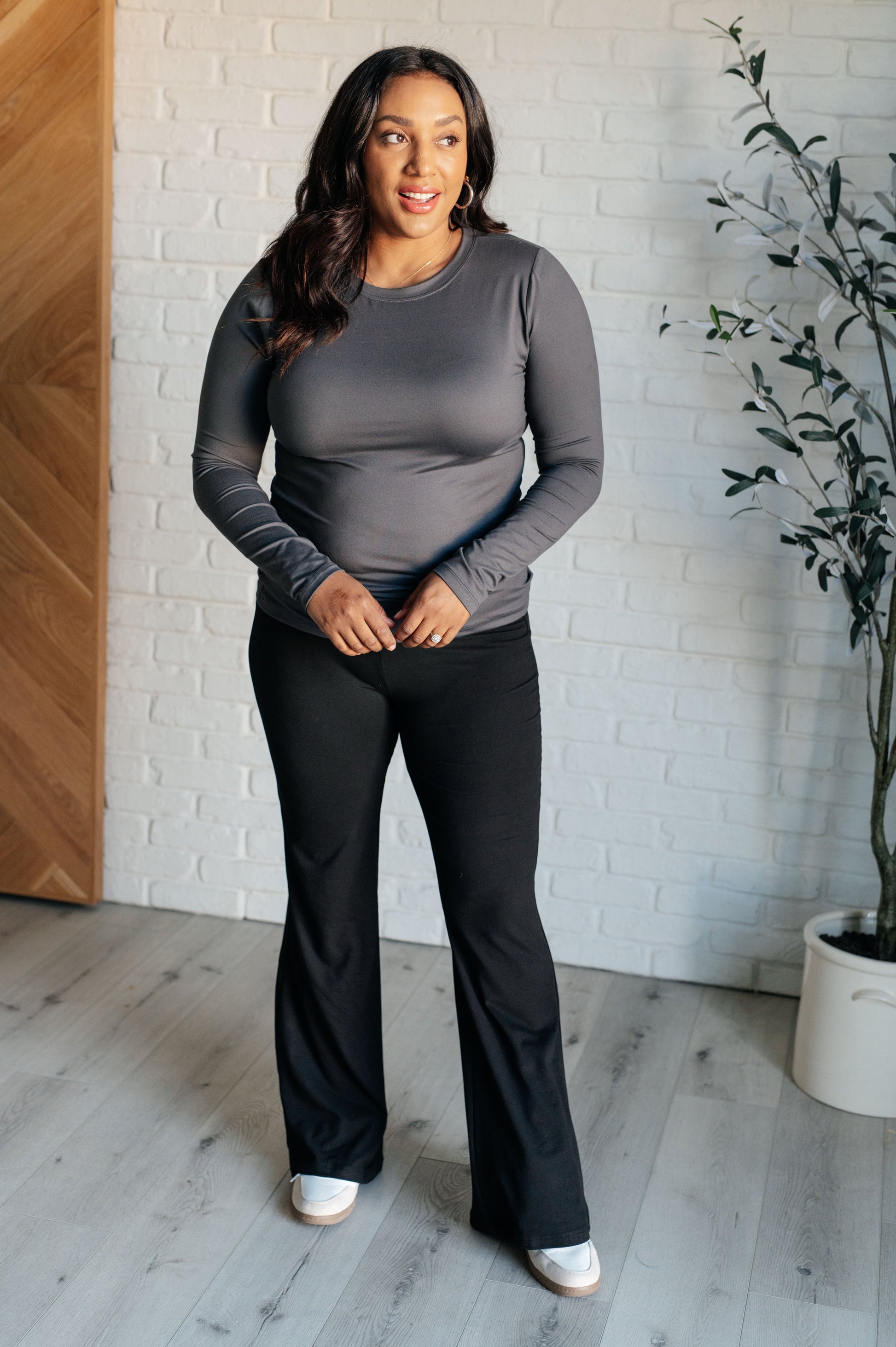 Feel flawless in our Basically Perfect Brushed Microfiber Tee. The soft brushed microfiber fabric hugs your curves, while accentuating your natural figure. The round neckline and long sleeves are perfect for layering. This form-fitting tee is basically perfect for any occasion.