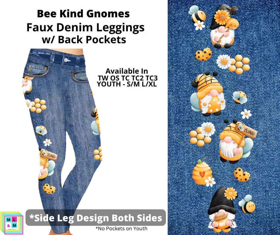 Bee Kind Gnomes Full Length Faux Denim w/ Side Leg Designs