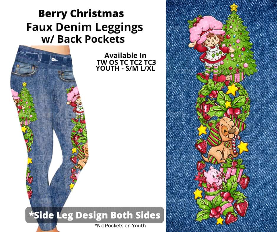 Berry Christmas Full Length Faux Denim w/ Side Leg Designs
