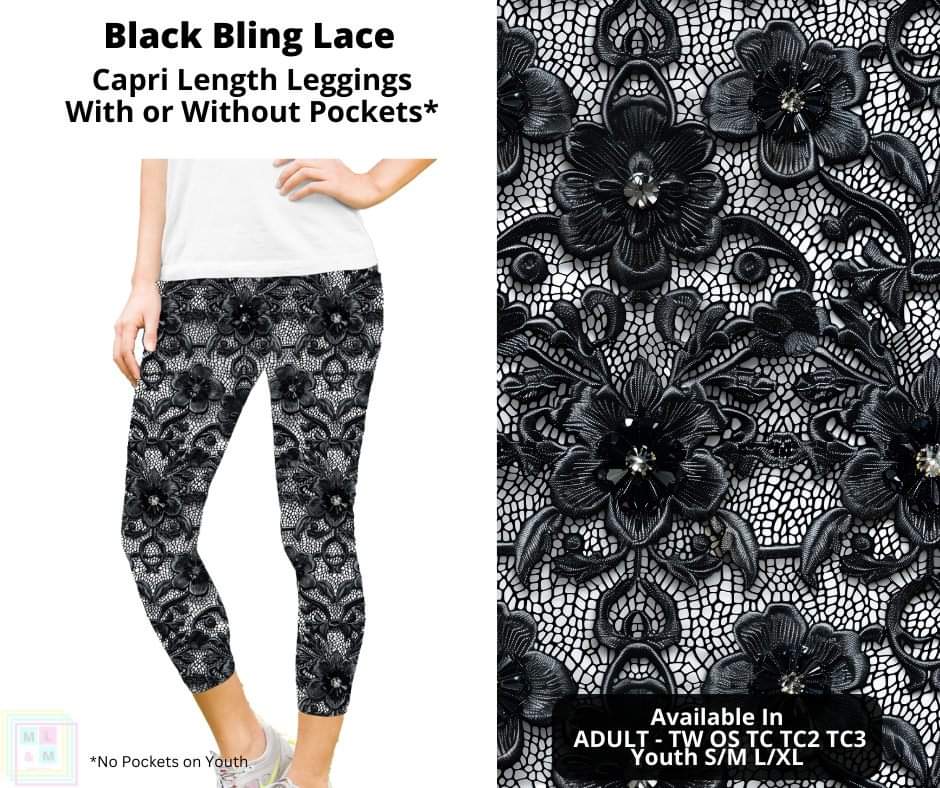 Black Bling Lace Capri Length Leggings w/ Pockets