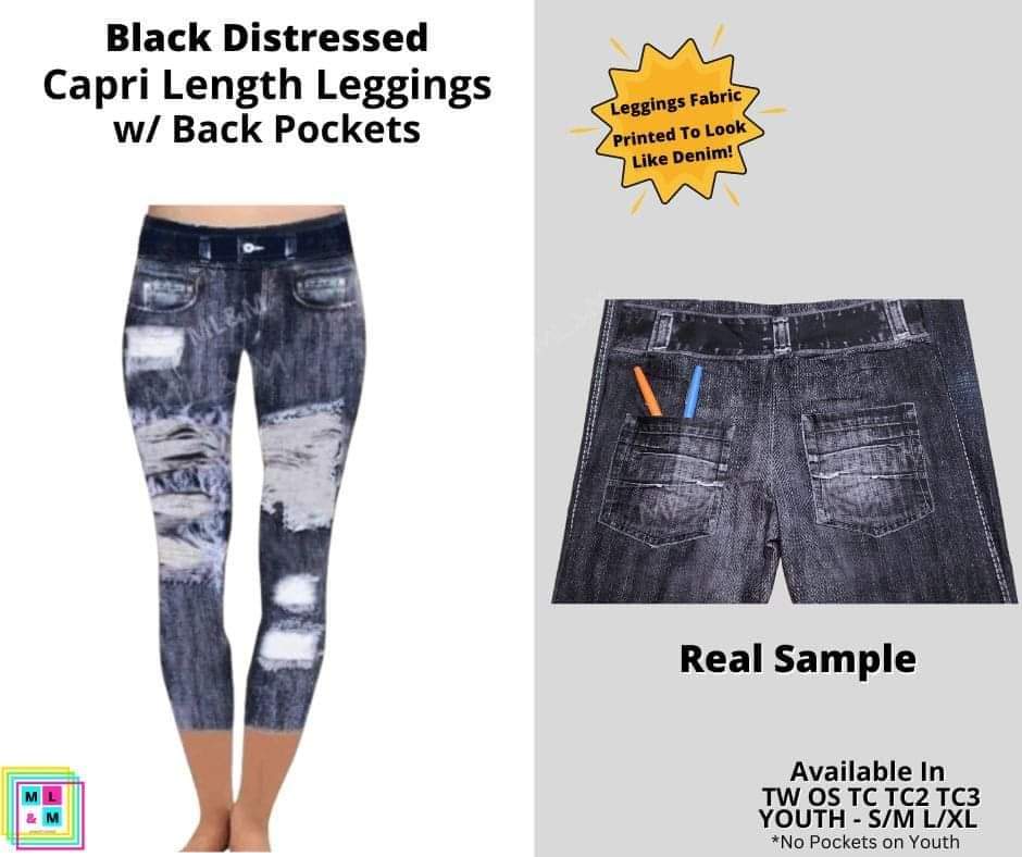 Black Distressed Faux Denim Capris