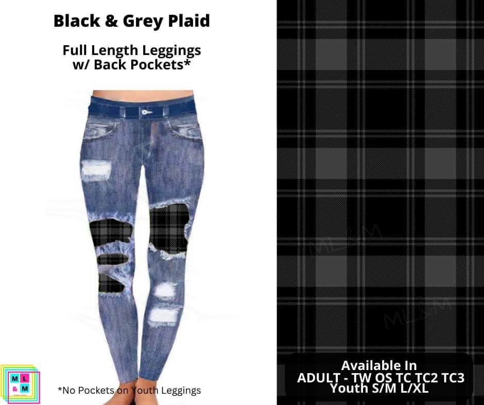 Black & Grey Plaid Faux Denim Full Length Peekaboo Leggings