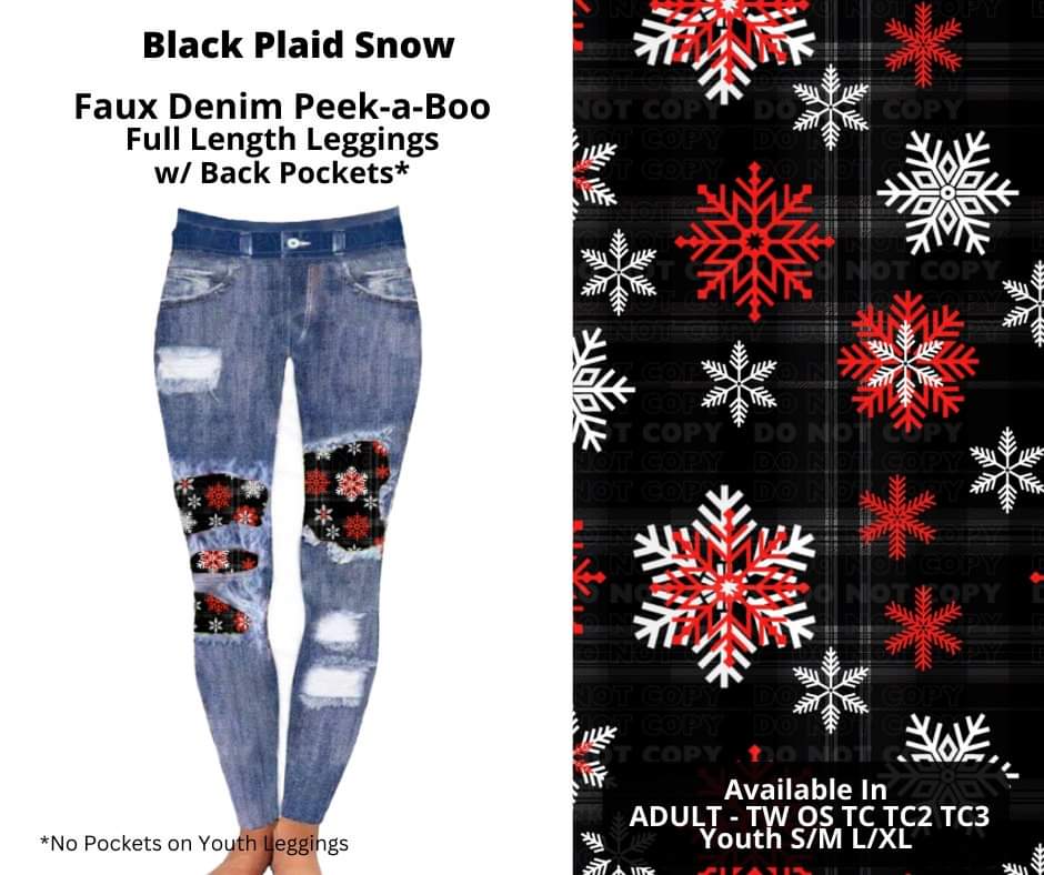 Black Plaid Snow Faux Denim Full Length Peekaboo Leggings