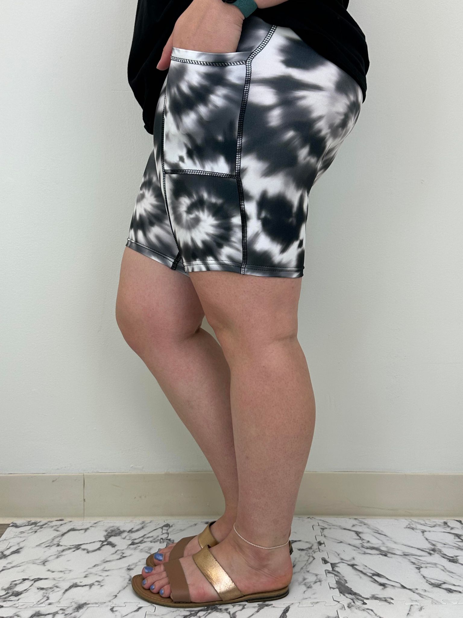 Black Tie Dye Biker Shorts w/ Pockets