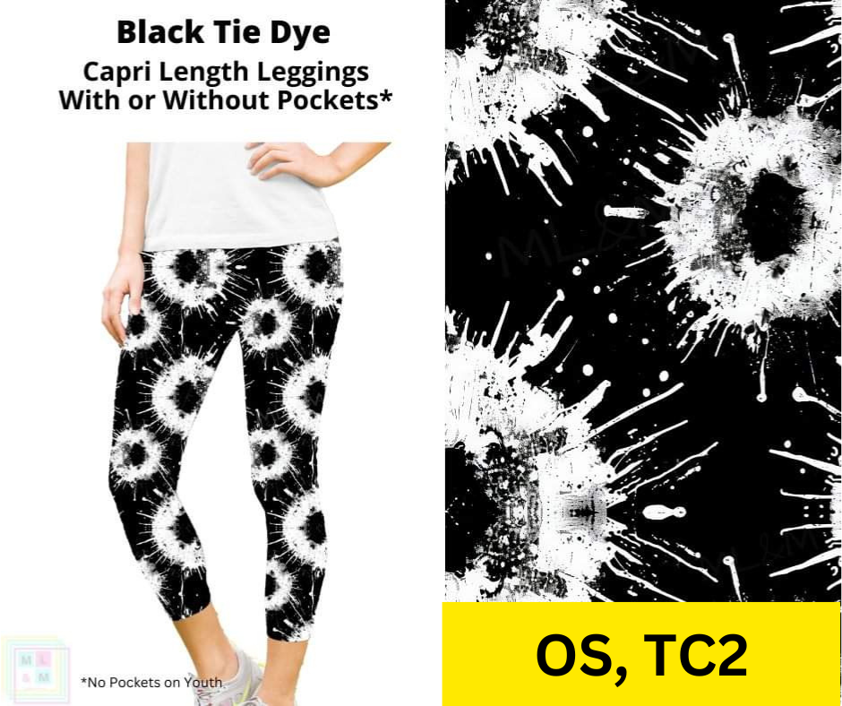 Black Tie Dye Capri Length Leggings w/ Pockets