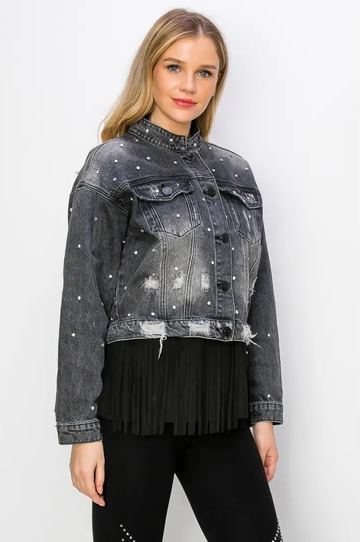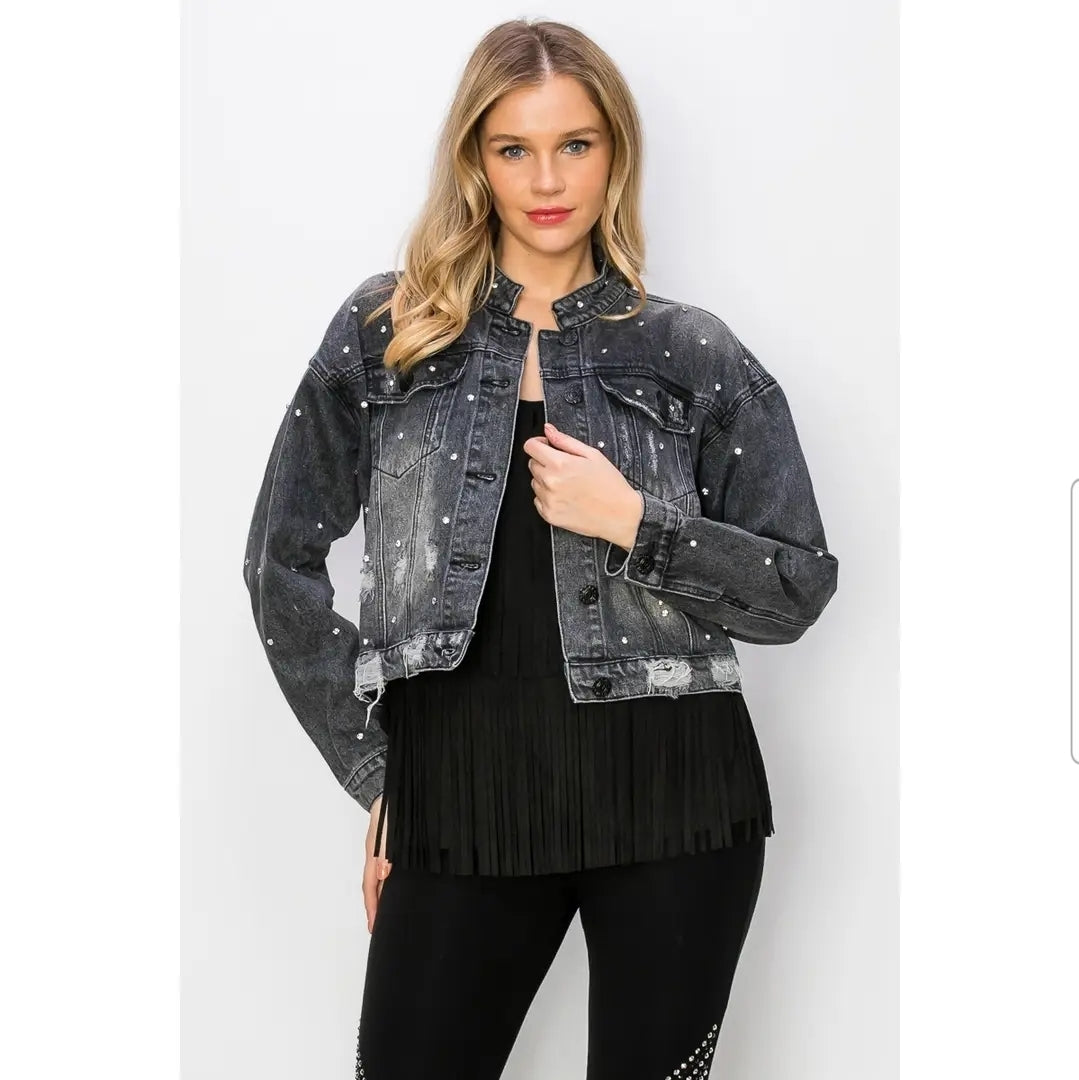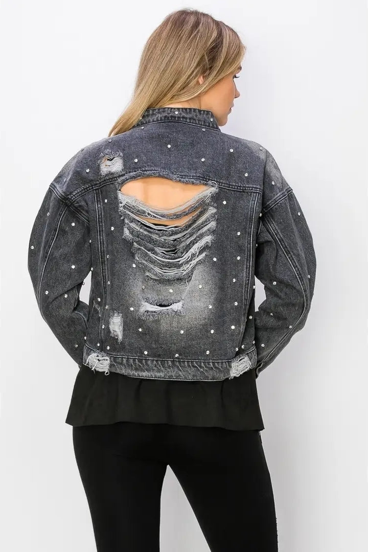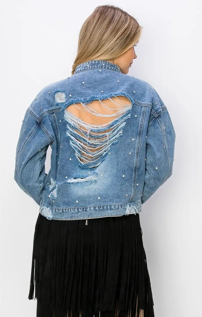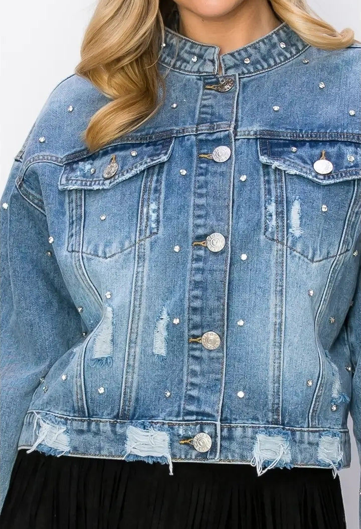 Blue and Black Denim real rhinestone distressed jackets, MADE IN THE USA!