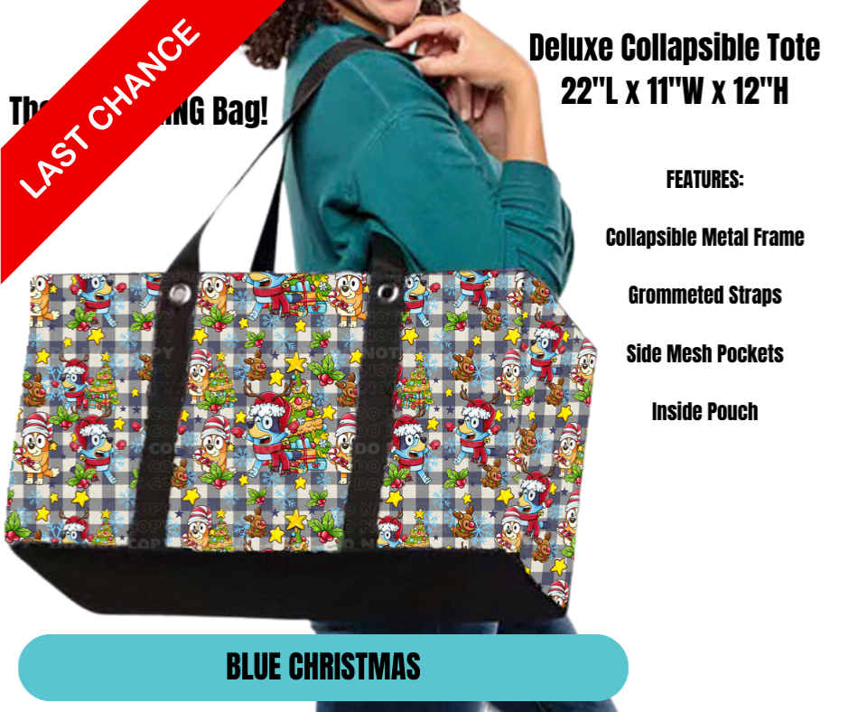 Blue Christmas Collapsible Tote
