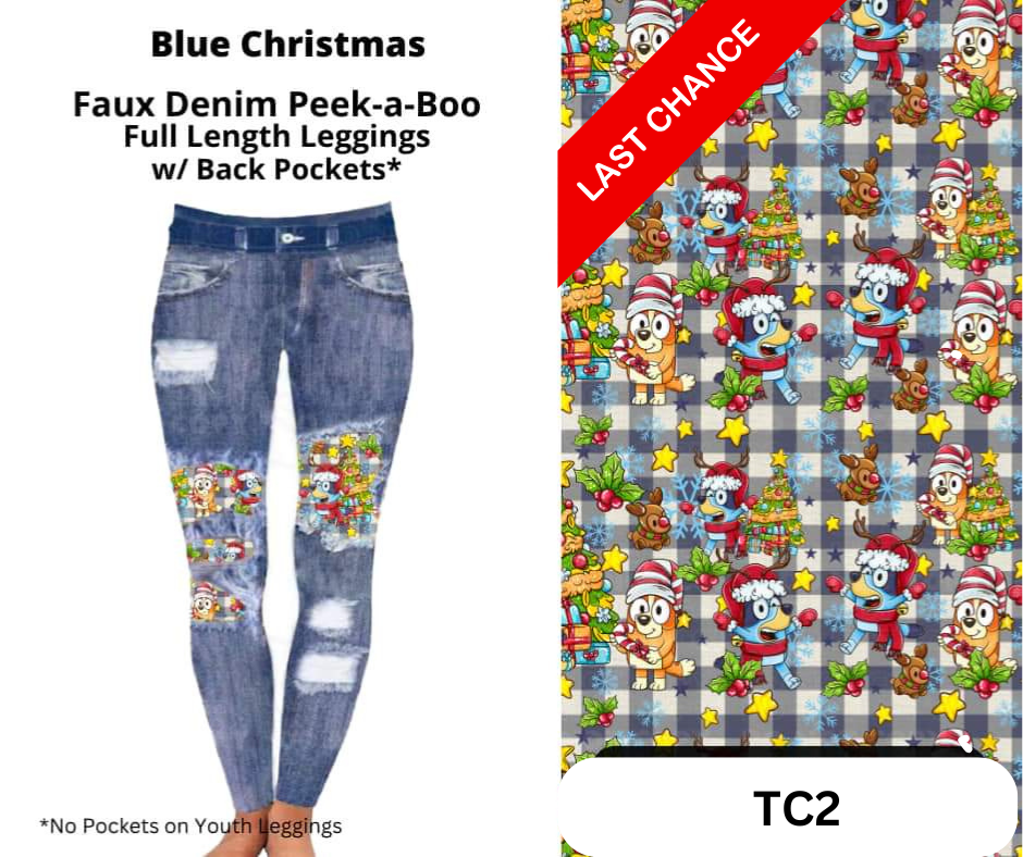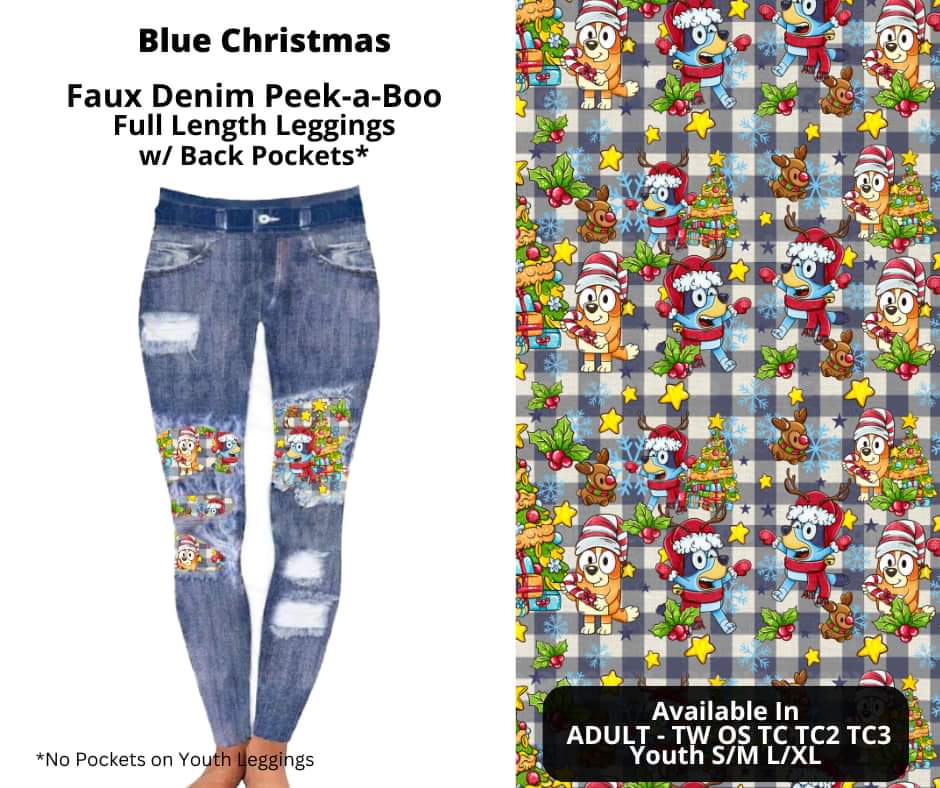Blue Christmas Faux Denim Full Length Peekaboo Leggings