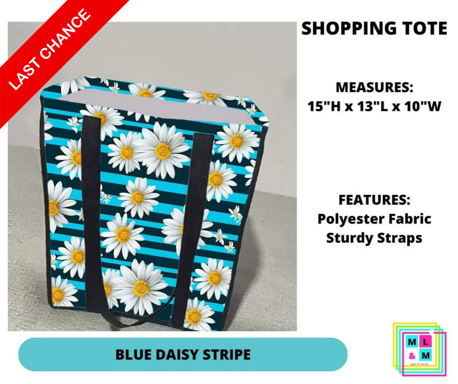 Blue Daisy Stripe Shopping Tote