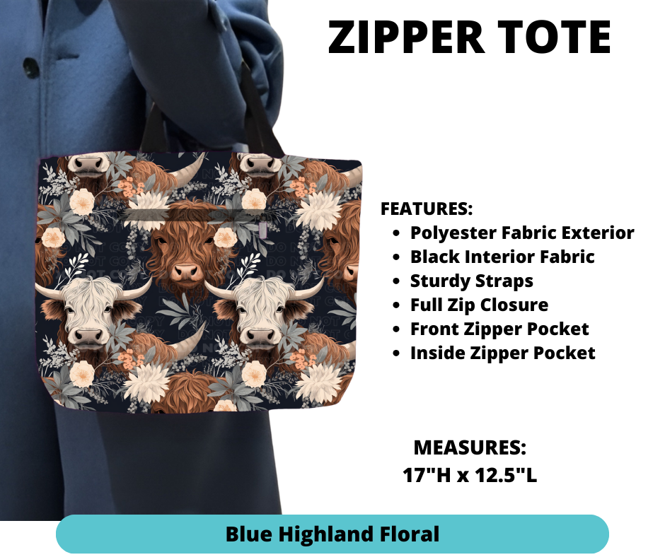Blue Highland Floral Zipper Tote