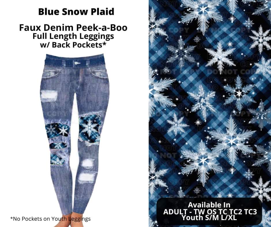Blue Snow Plaid Faux Denim Full Length Peekaboo Leggings