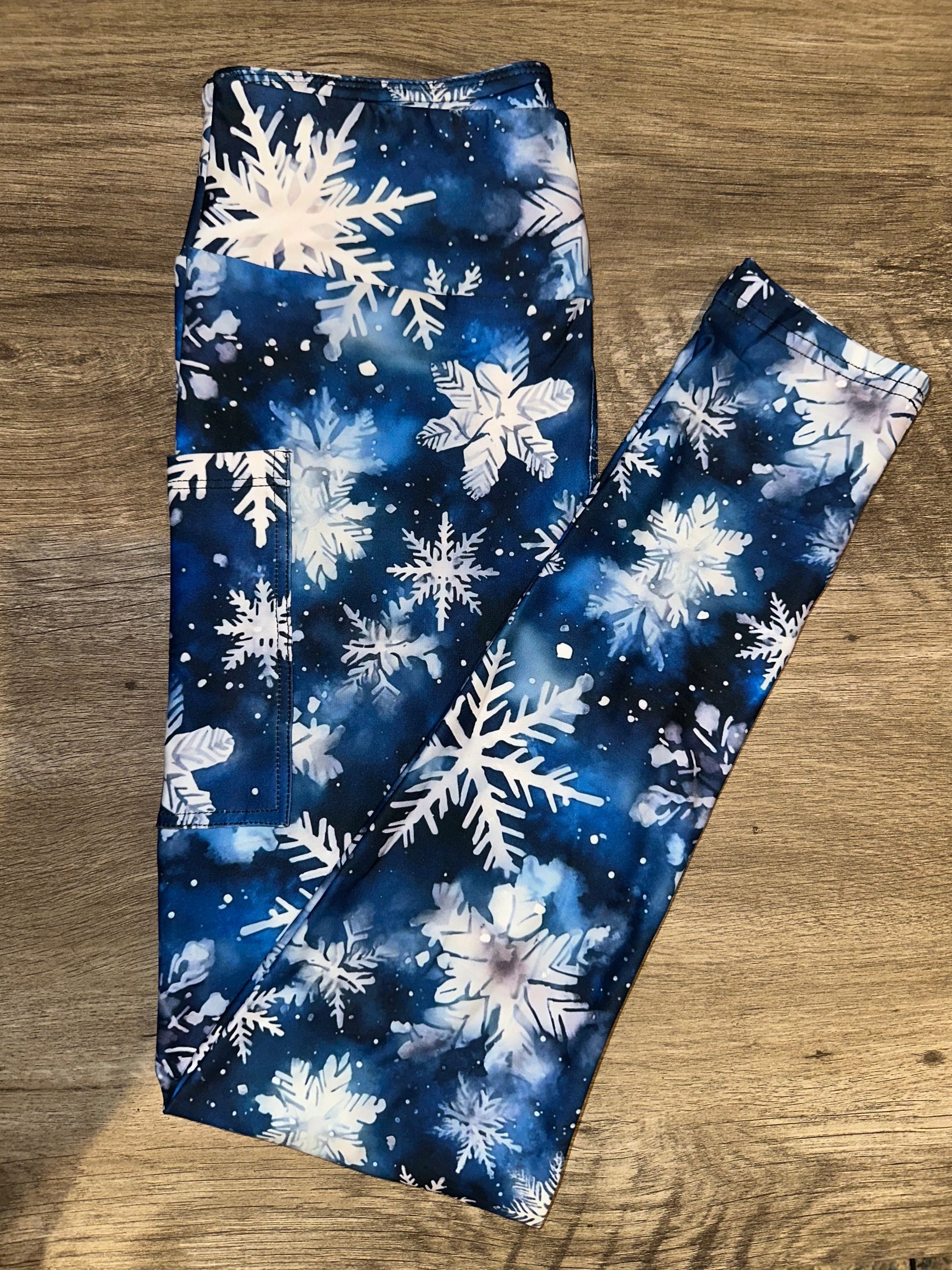 Blue Snowflake Leggings w/ Pockets