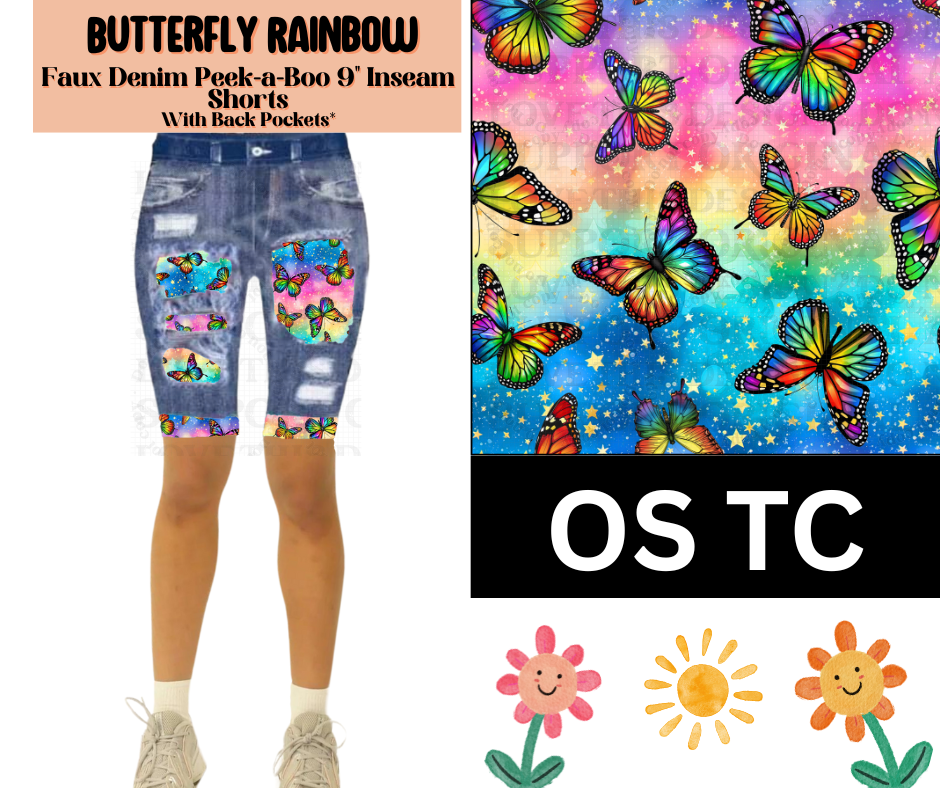 Butterfly Rainbow Faux Denim Jamaica Shorts