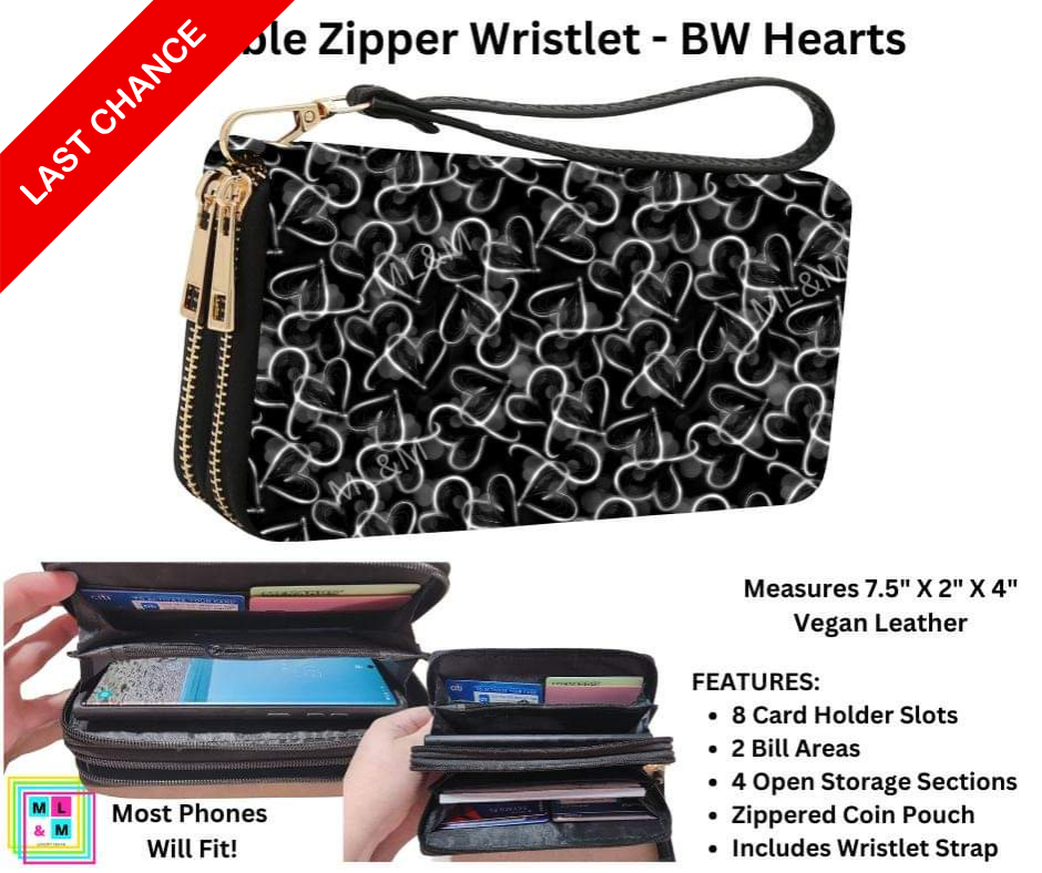 BW Hearts Double Zipper Wristlet