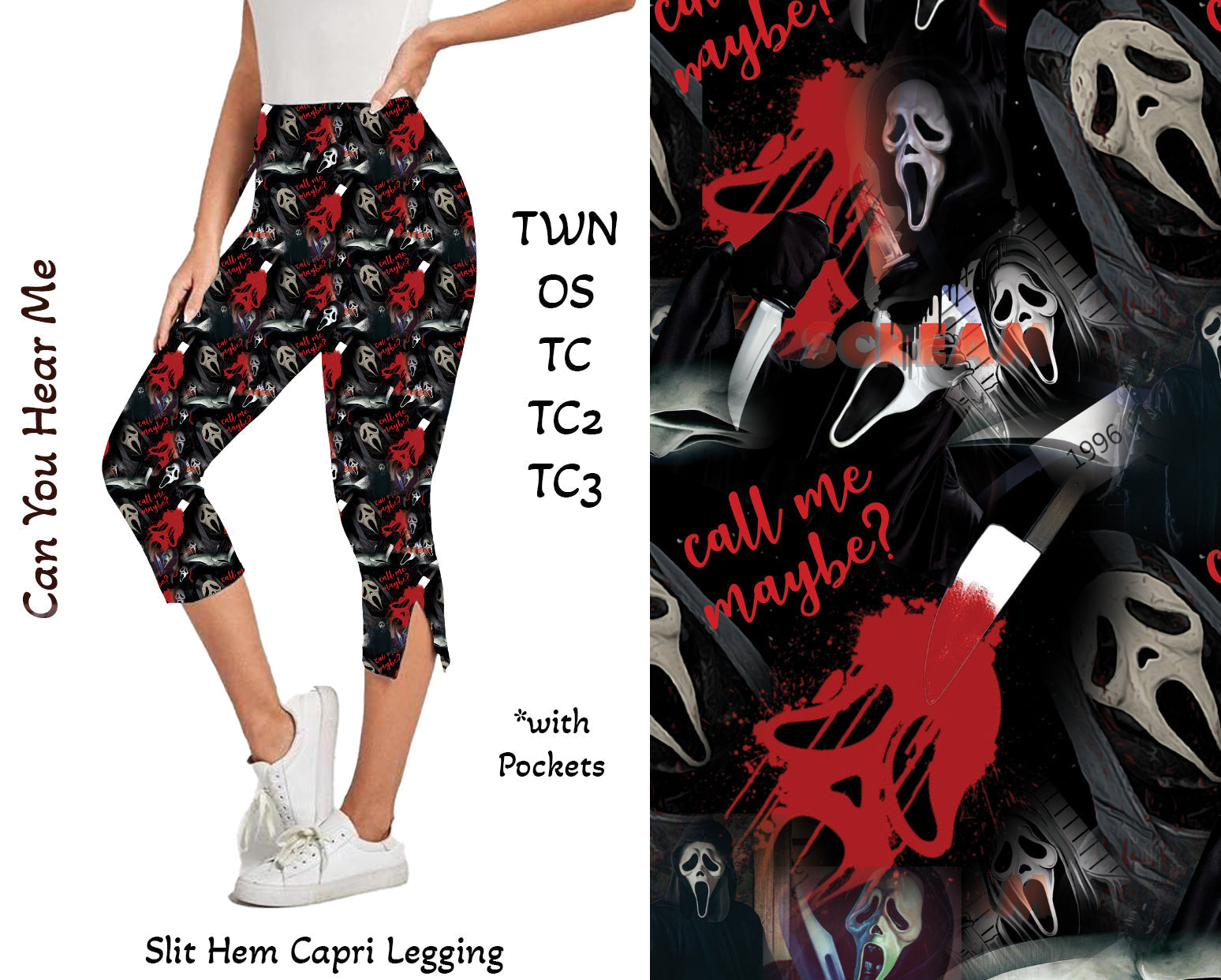 Can You Hear Me Side Slit Hem Capri Leggings with Pockets