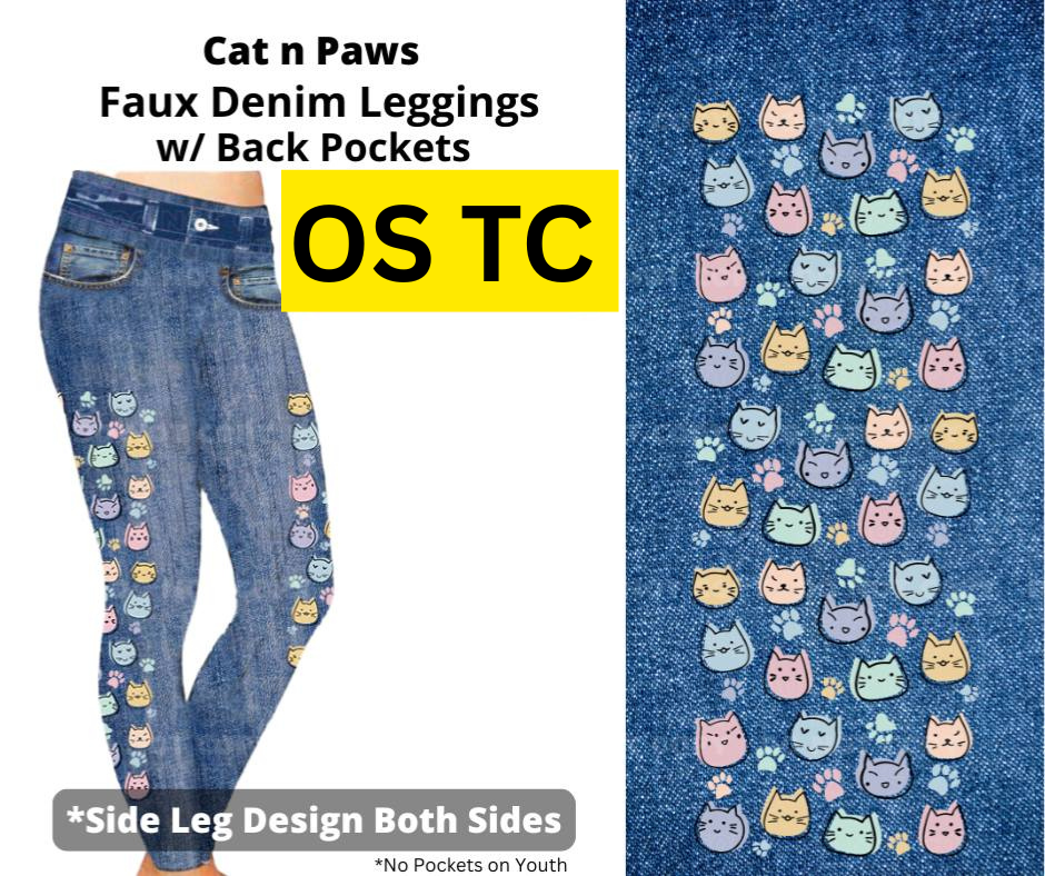 Cats n Paws Full Length Faux Denim w/ Side Leg Designs