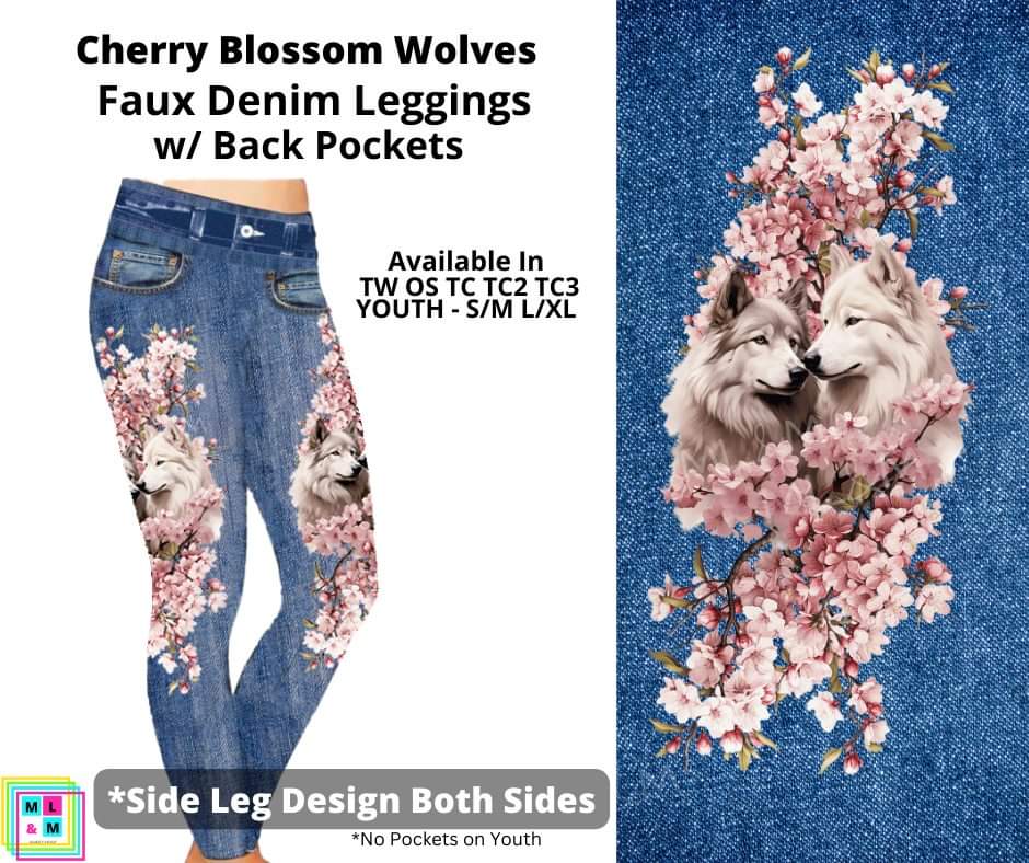 Cherry Blossom Wolves Full Length Faux Denim w/ Side Leg Designs