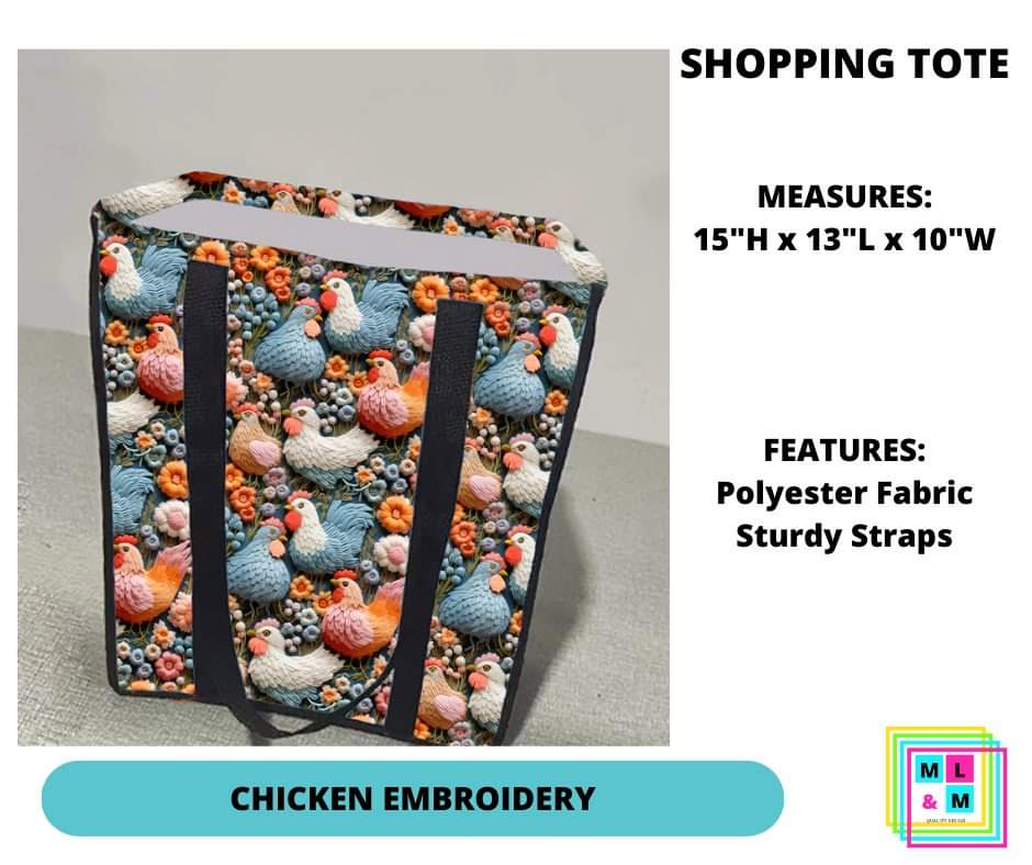 Chicken Embroidery Shopping Tote