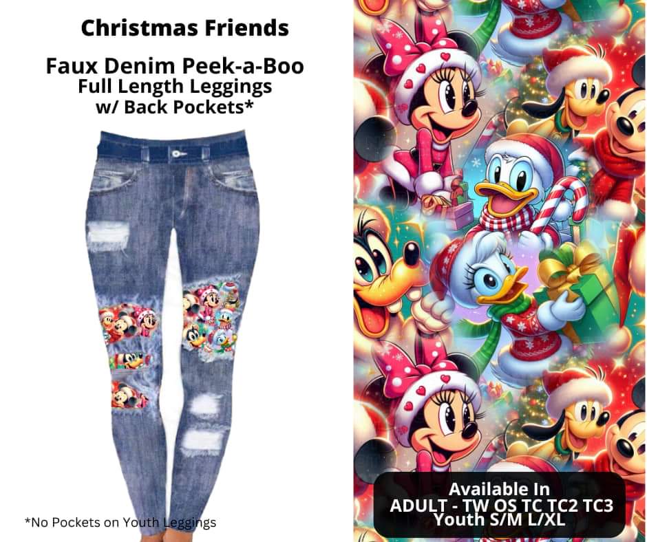 Christmas Friends Faux Denim Full Length Peekaboo Leggings