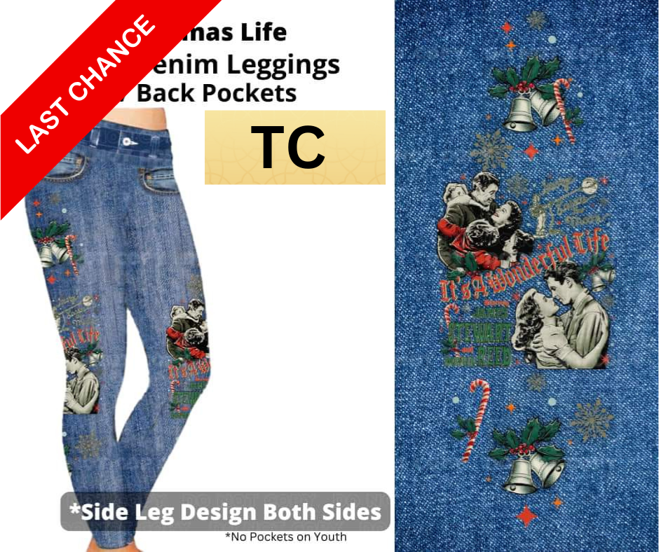 Christmas Life Full Length Faux Denim w/ Side Leg Designs