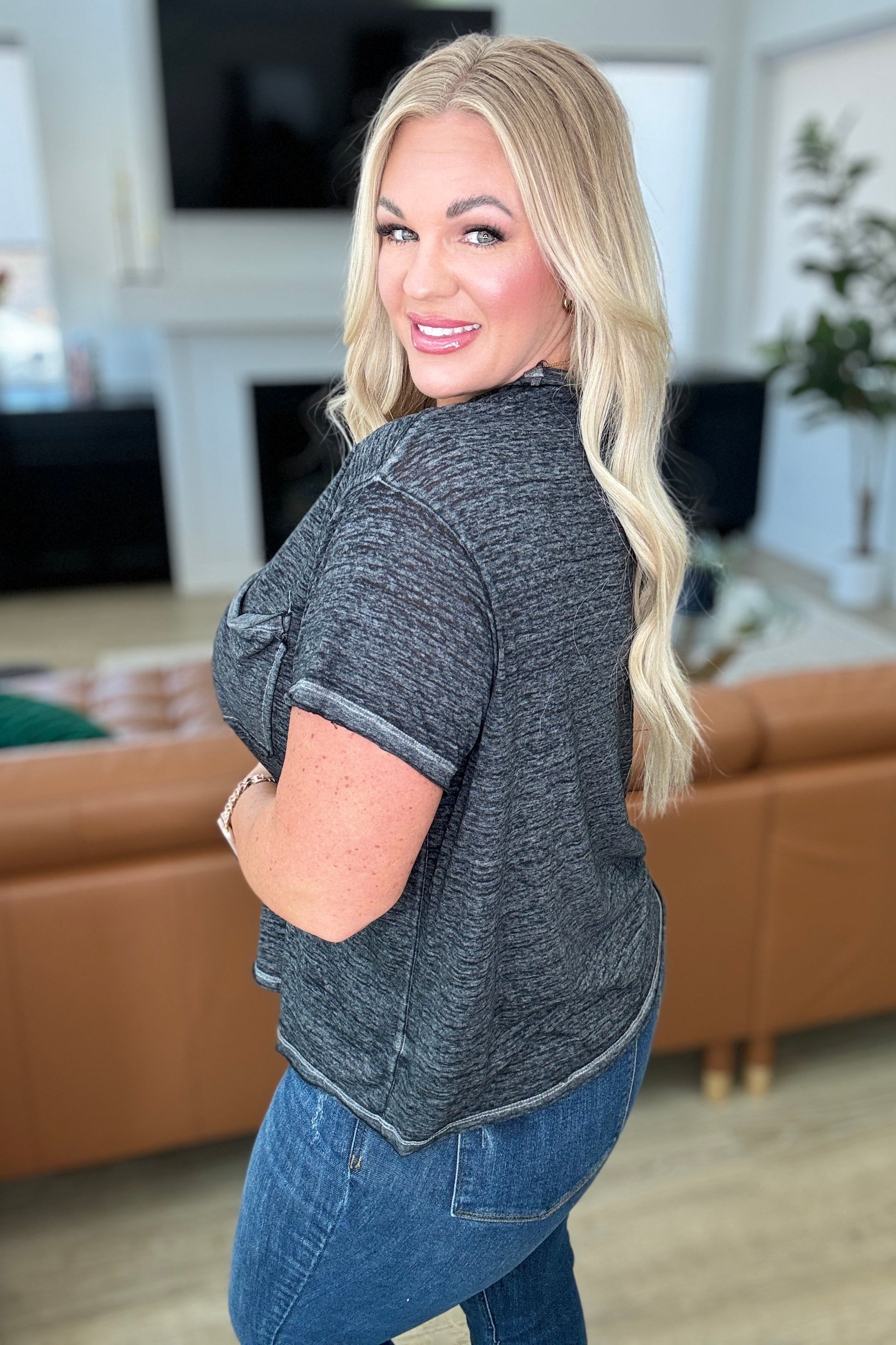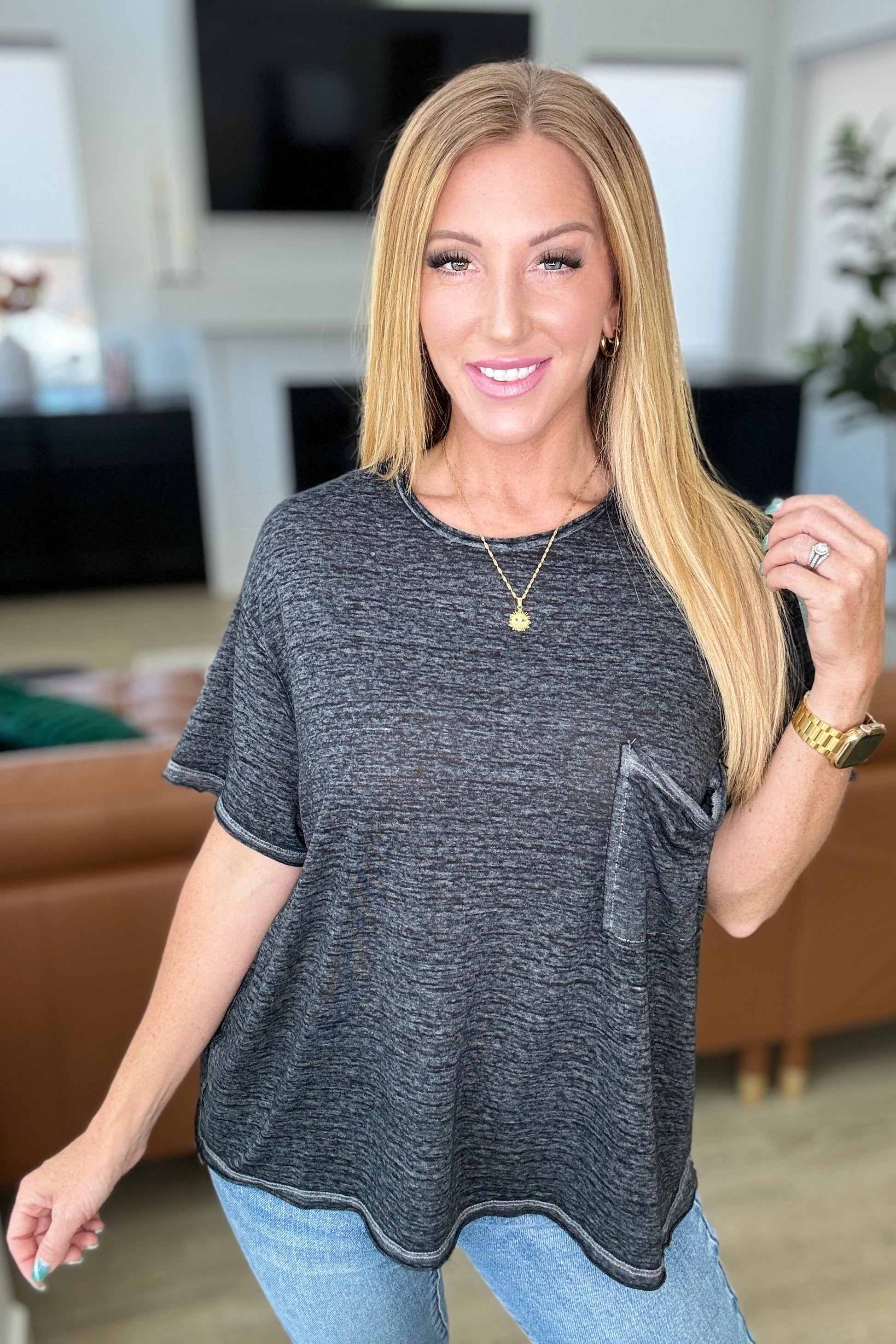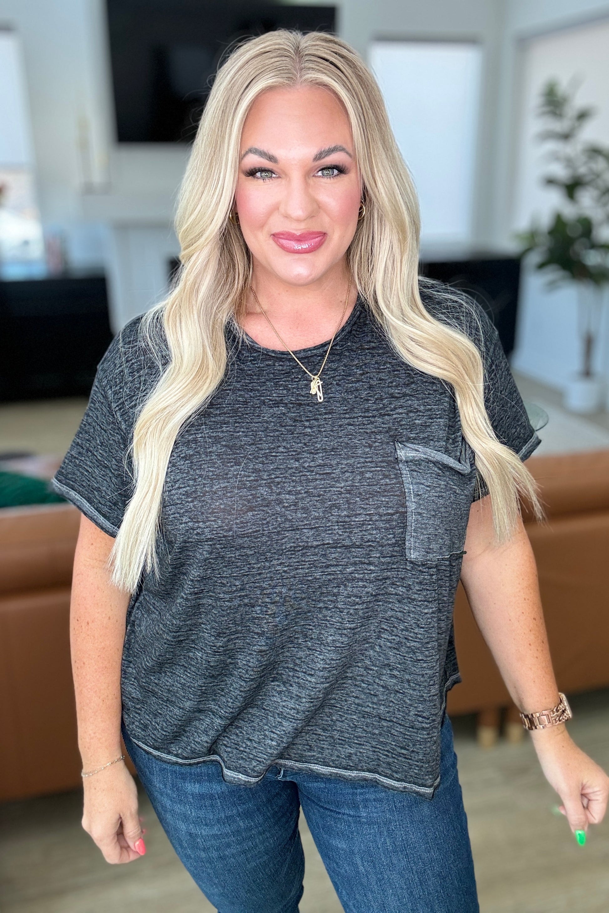 Stay cool and comfortable all day long in our Close to Myself Patch Pocket Tee! This versatile shirt features a soft jersey knit fabric, a round neckline, and drop shoulder for a relaxed fit. The functional patch pocket adds convenience while the raw hem and mineral washed finish elevate the look. Grab yours today!