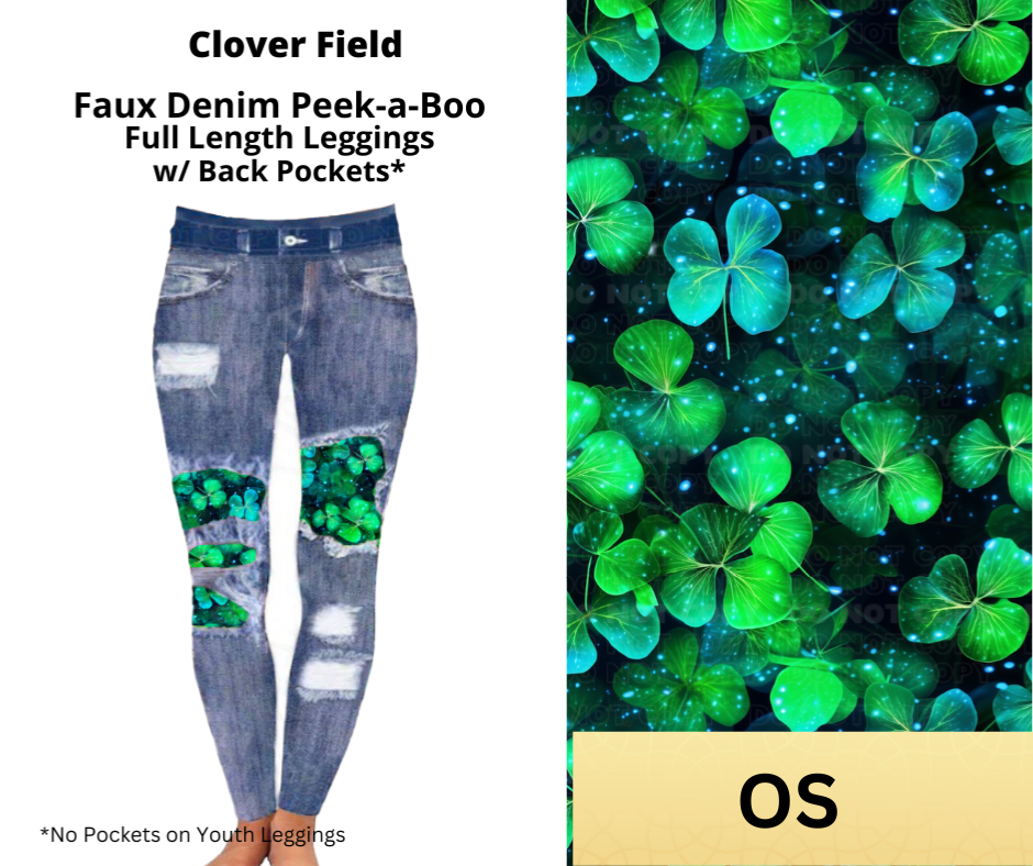 Clover Field Faux Denim Full Length Peekaboo Leggings