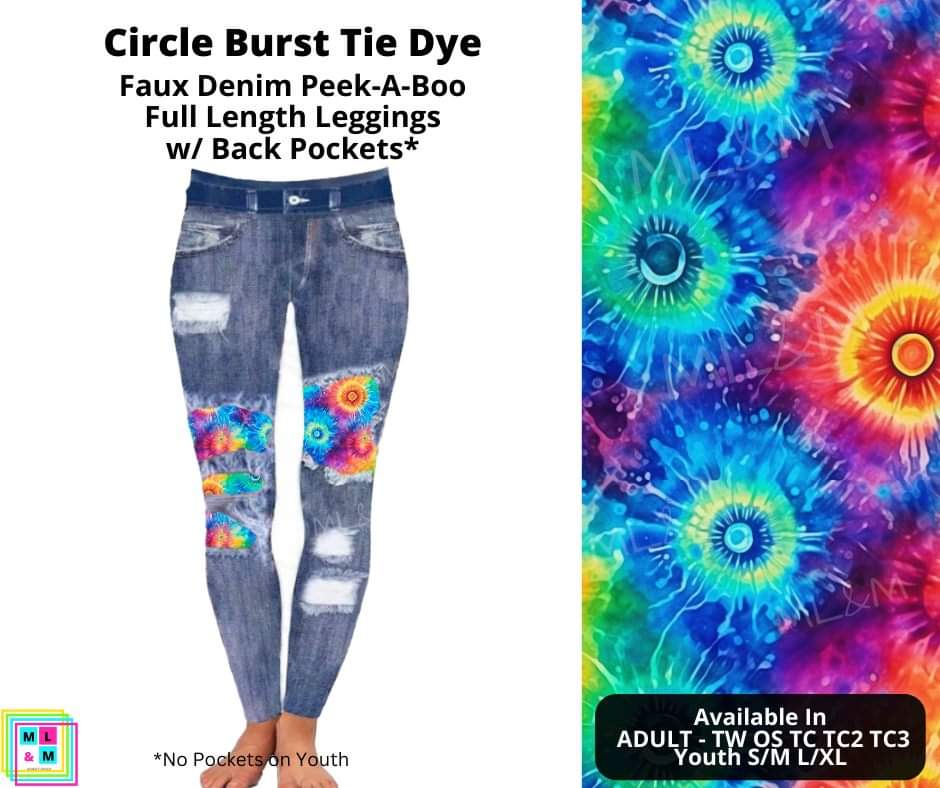 Color Burst Tie Dye Faux Denim Full Length Peekaboo Leggings