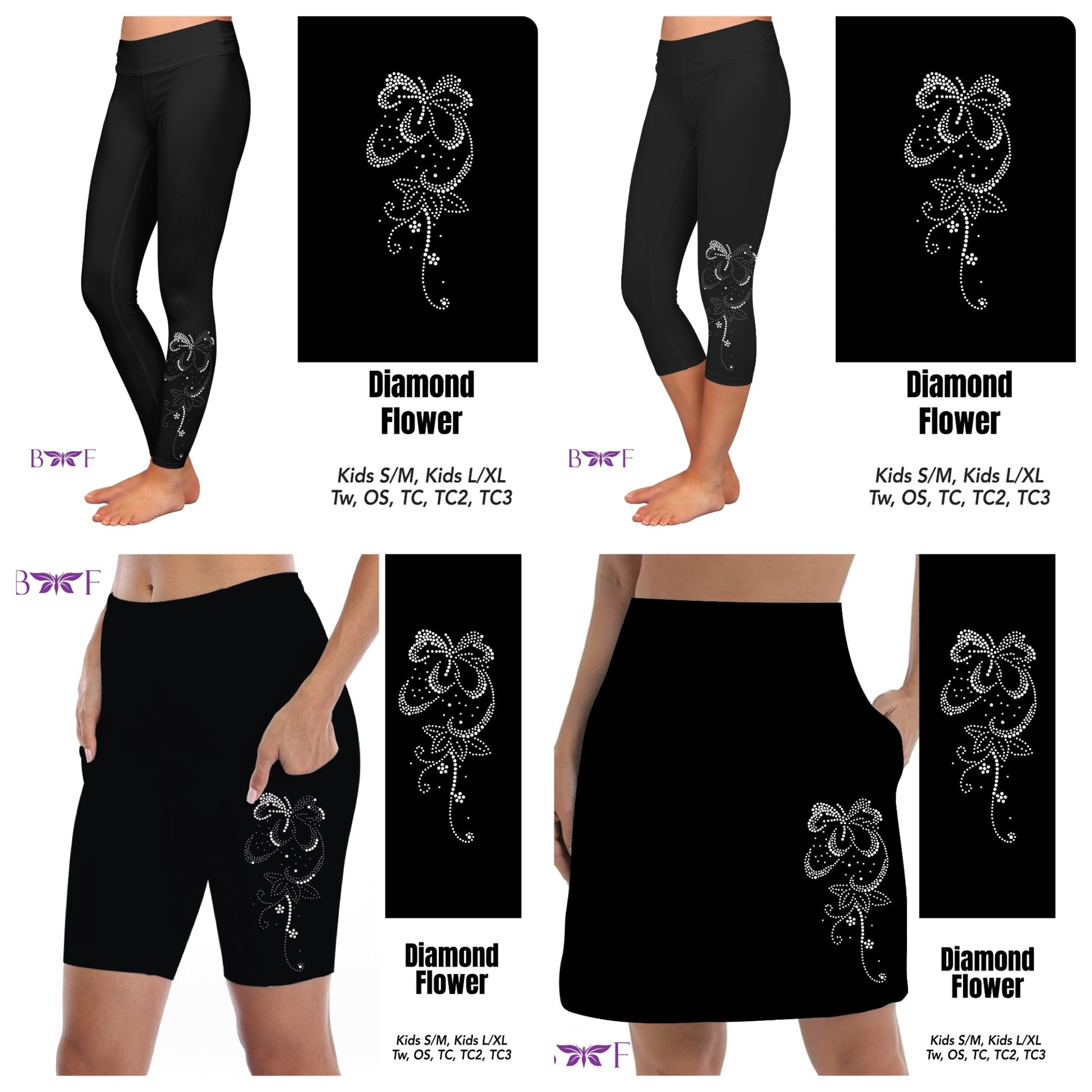 Gemstone Diamond Flower on Black Faux Denim REAL gemstones