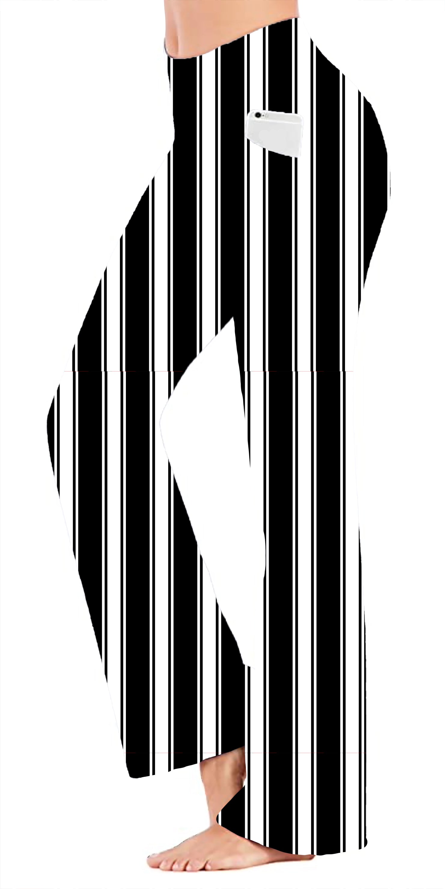 Black & White Stripe #2 - Yoga Flares with Pockets