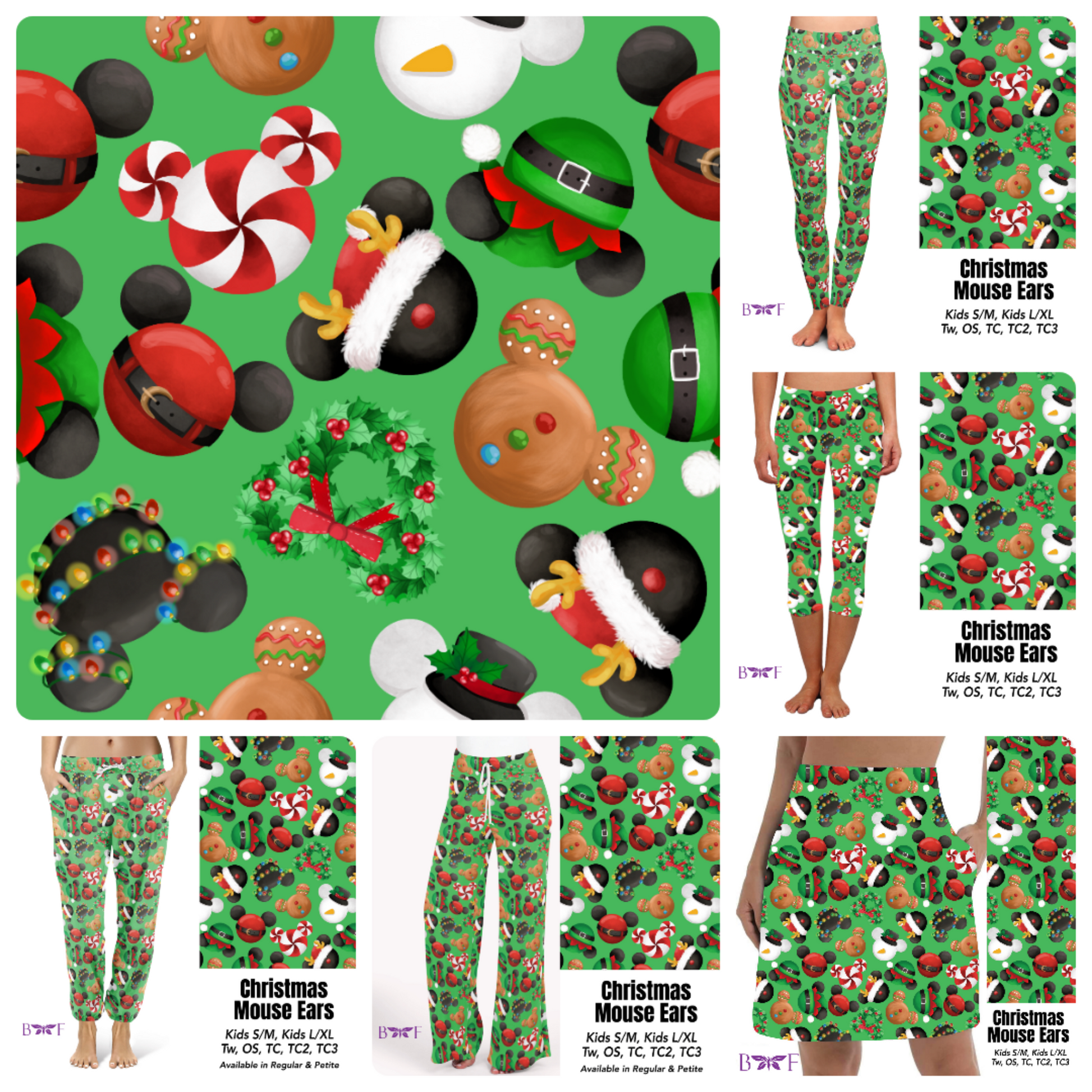 Christmas Mouse Ears leggings, capris and skorts