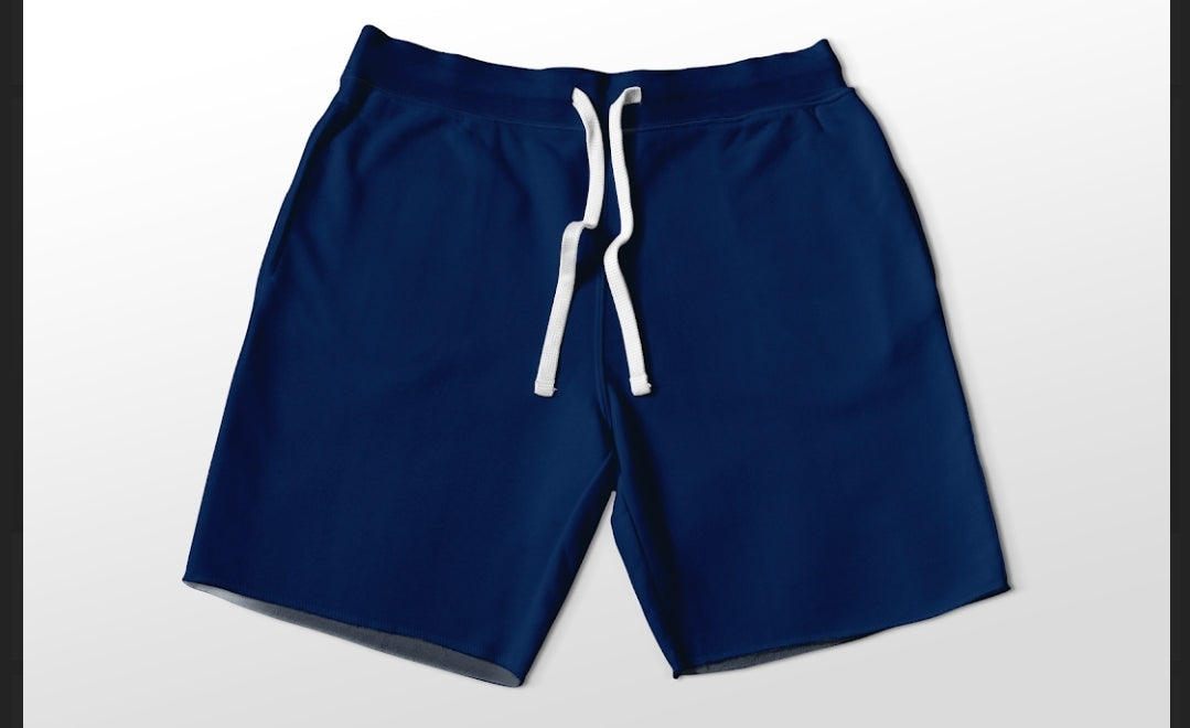 Solid Navy jogger shorts with pockets 4" and 7" available