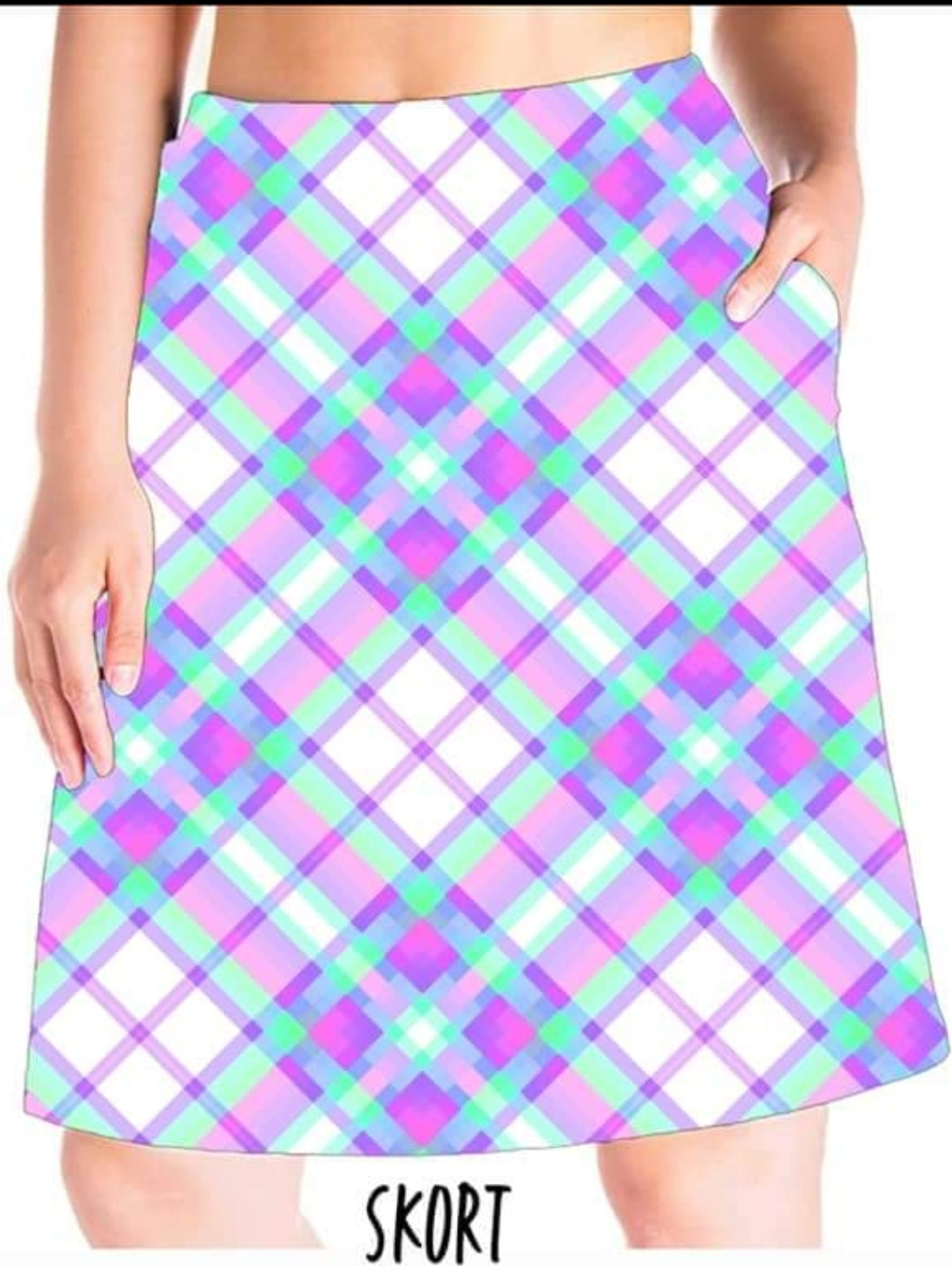 Welcome to our new skort line! These lightweight pocketed skirts have shorts underneath for cool comfort with protection for windy days! Great for everyday wear, working out or a night on the town!