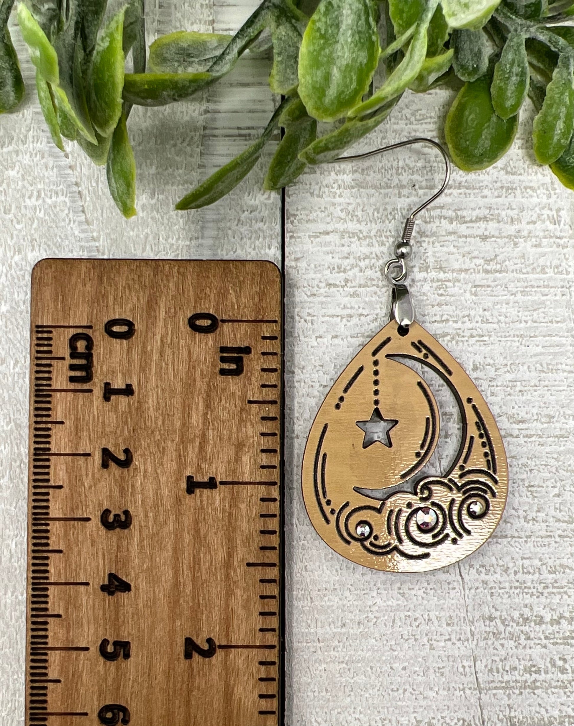 Star and Crescent Moon Clouds Drop - Handcrafted Earrings