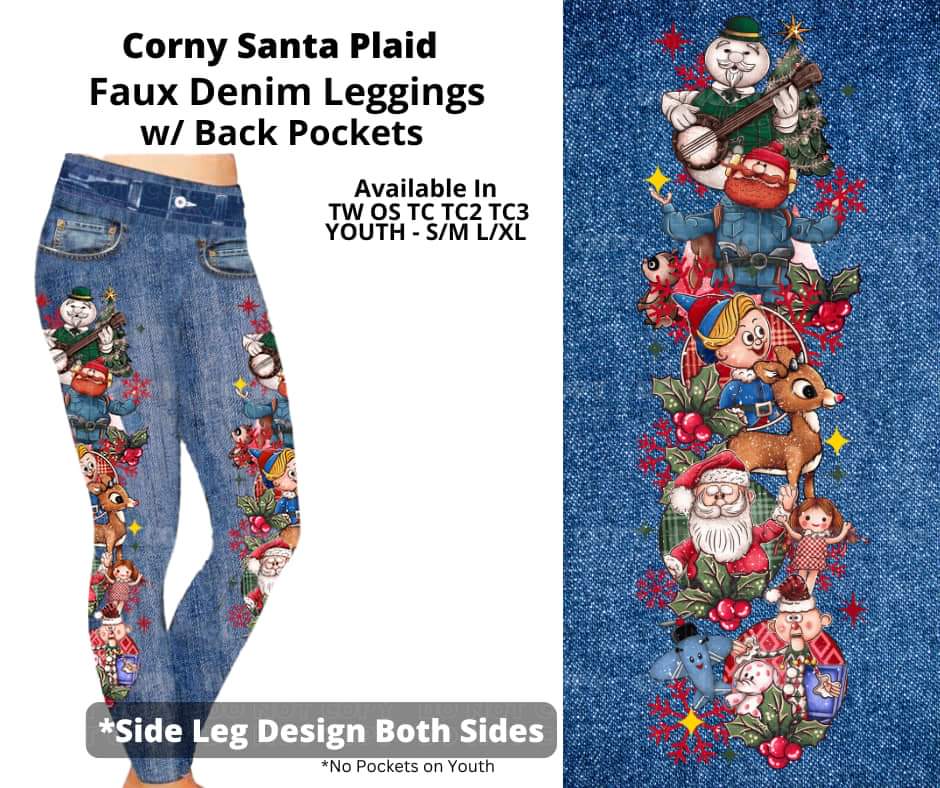 Corny Santa Plaid Full Length Faux Denim w/ Side Leg Designs
