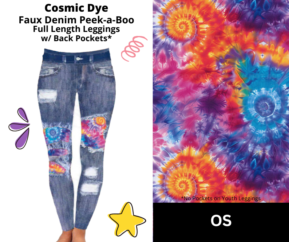 Cosmic Dye Faux Denim Full Length Peekaboo Leggings