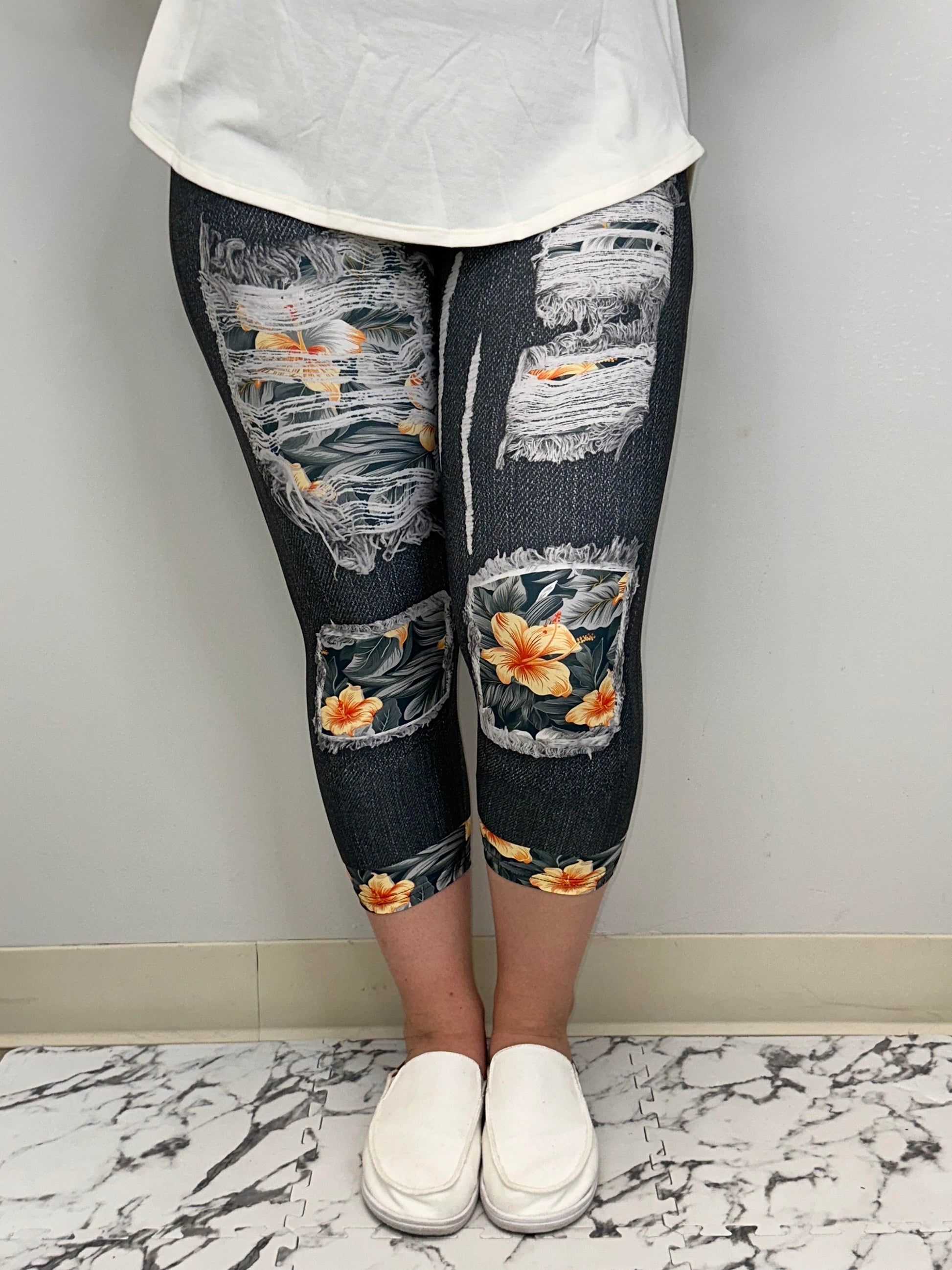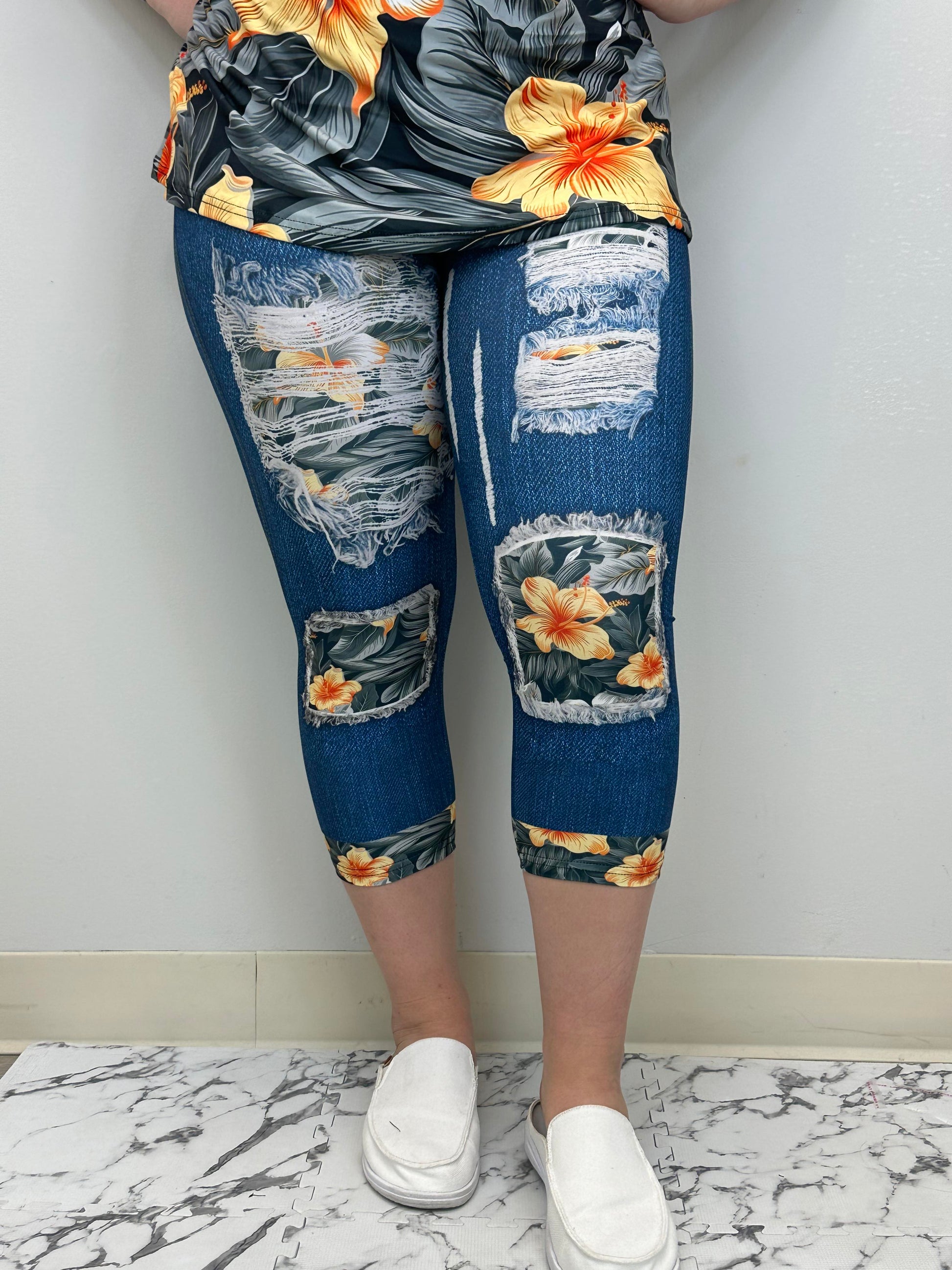 Dark Hibiscus Capri w/ Butt Pockets