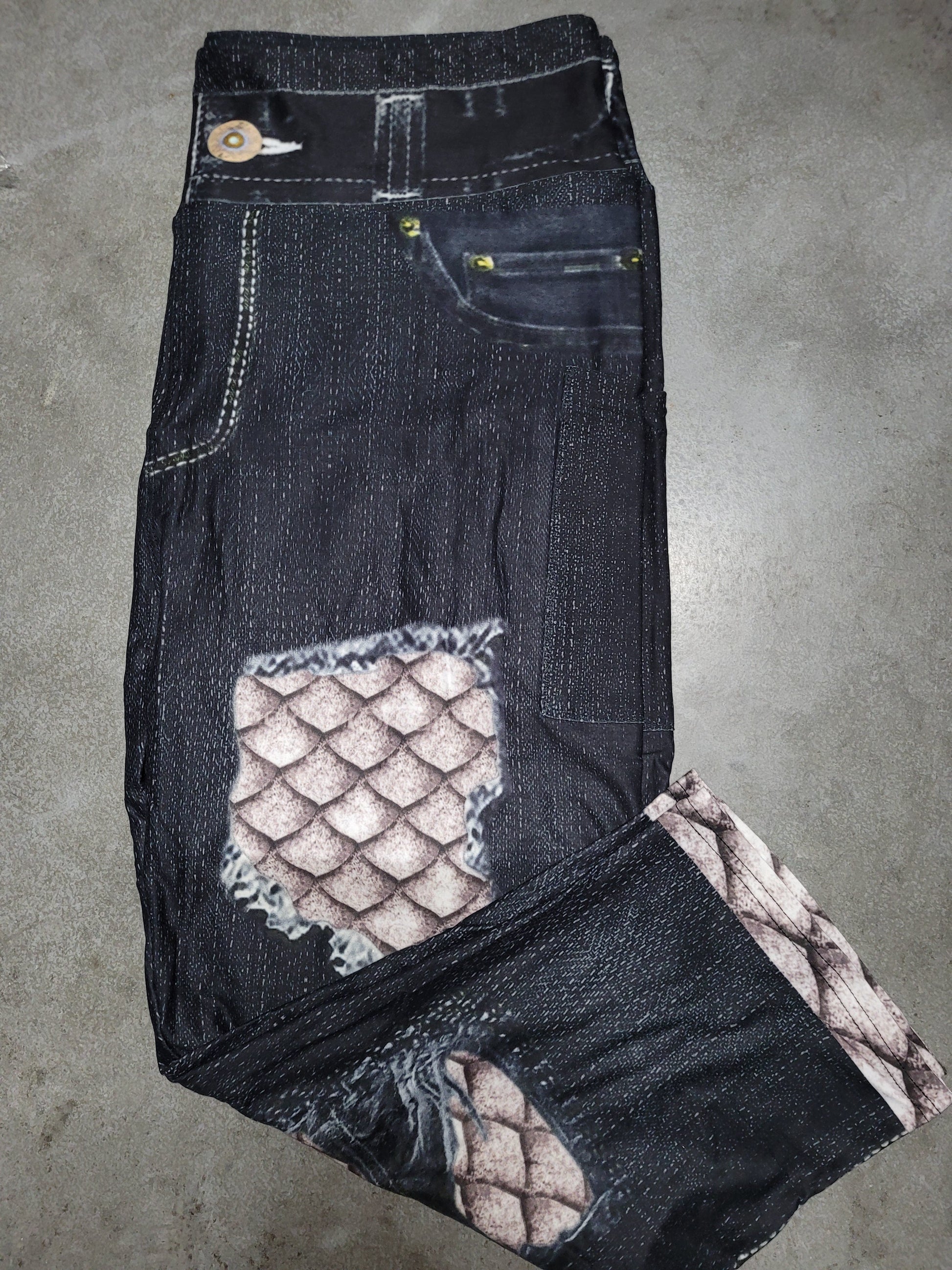 Dragon Scale faux denim leggings and capris
