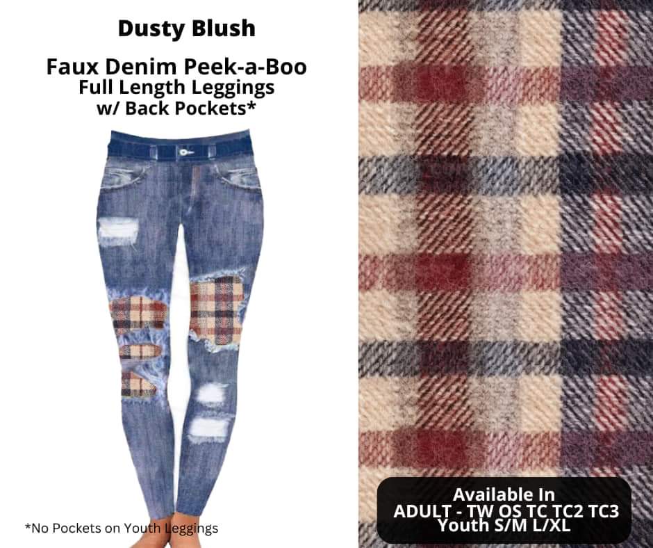 Dusty Blush Faux Denim Full Length Peekaboo Leggings