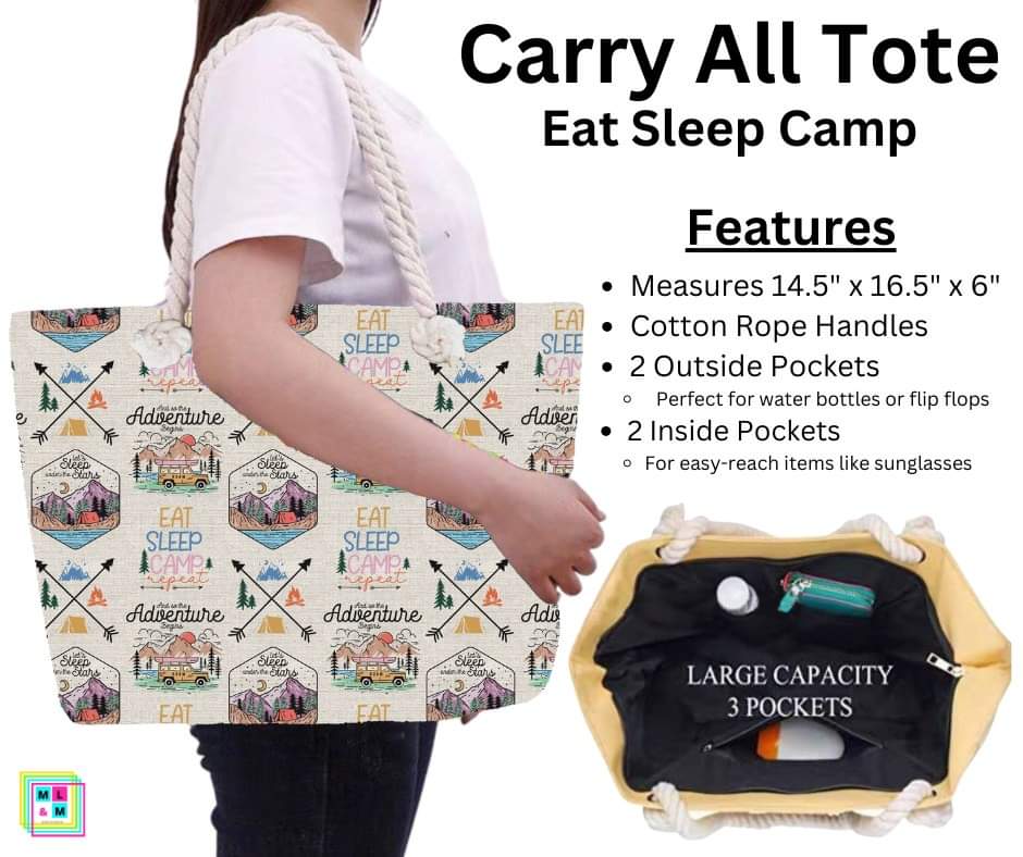 Eat Sleep Camp Carry All Tote w/ Zipper