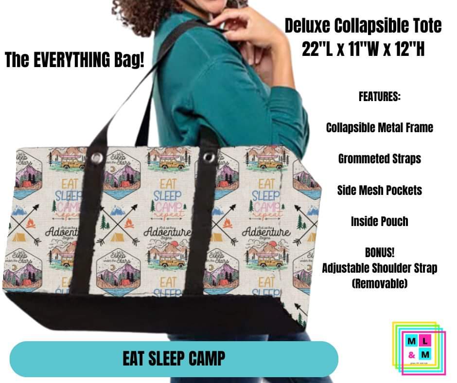 Eat Sleep Camp Collapsible Tote