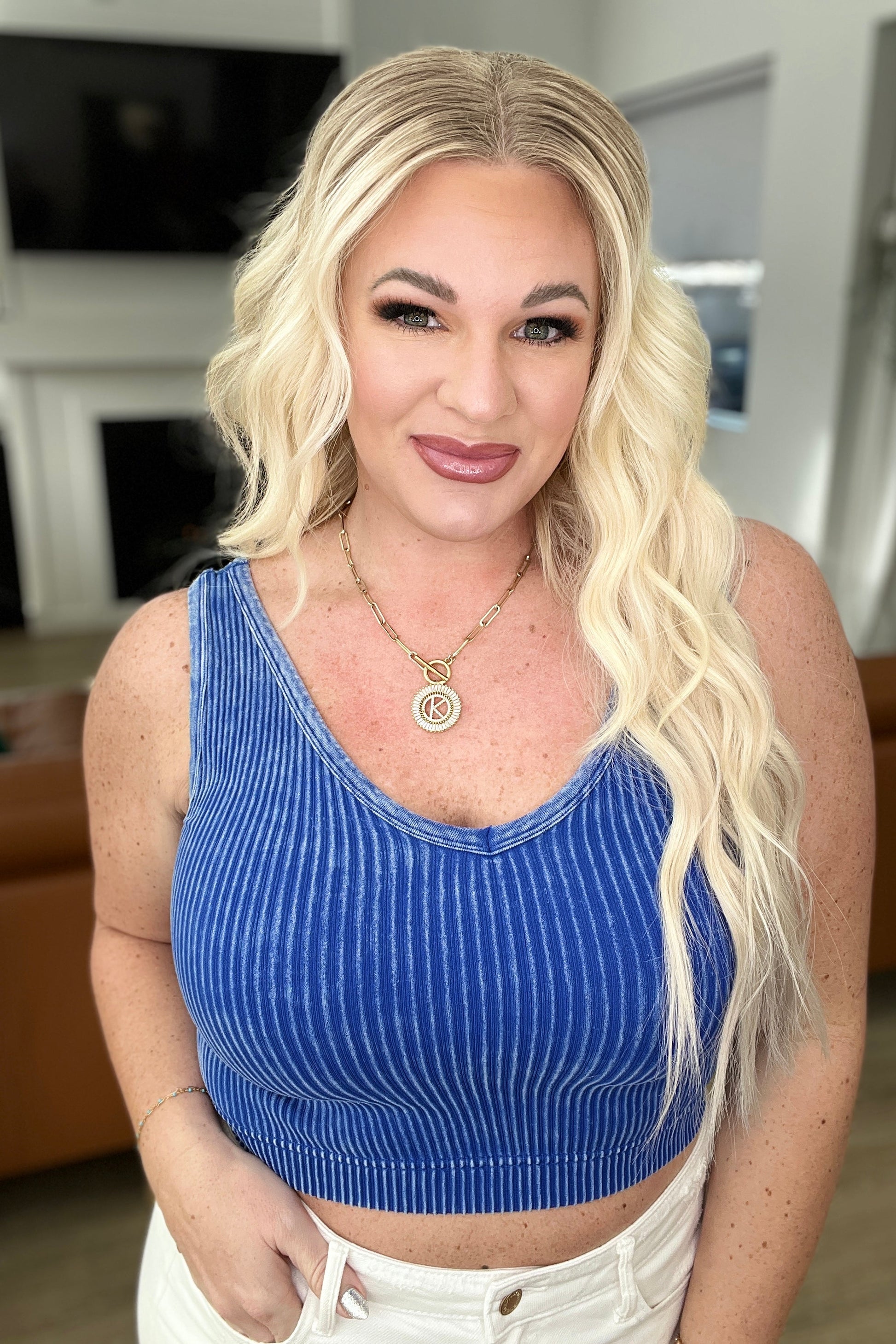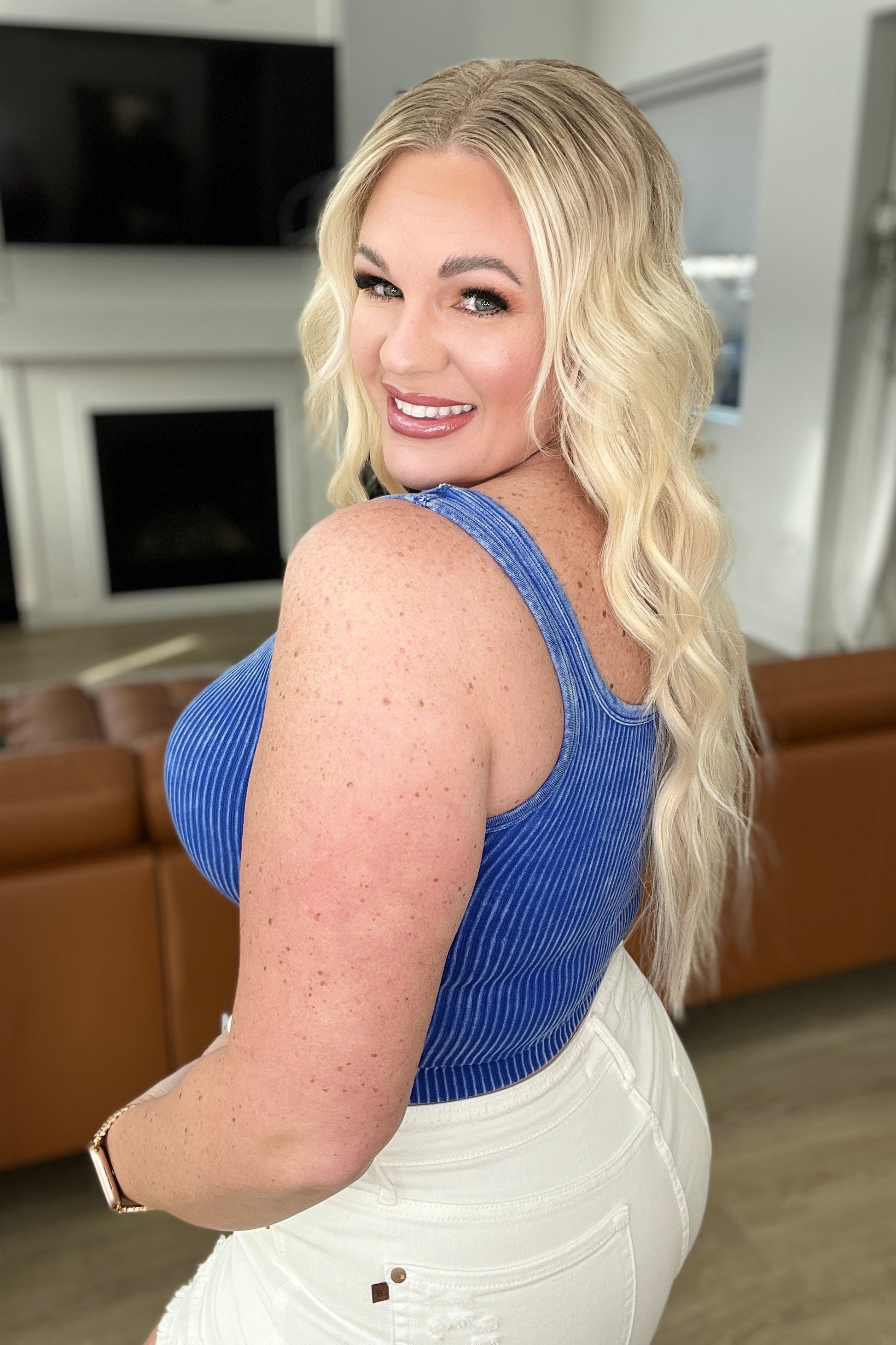 Effortless Reversible Mineral Wash Ribbed Tank in Light Navy
