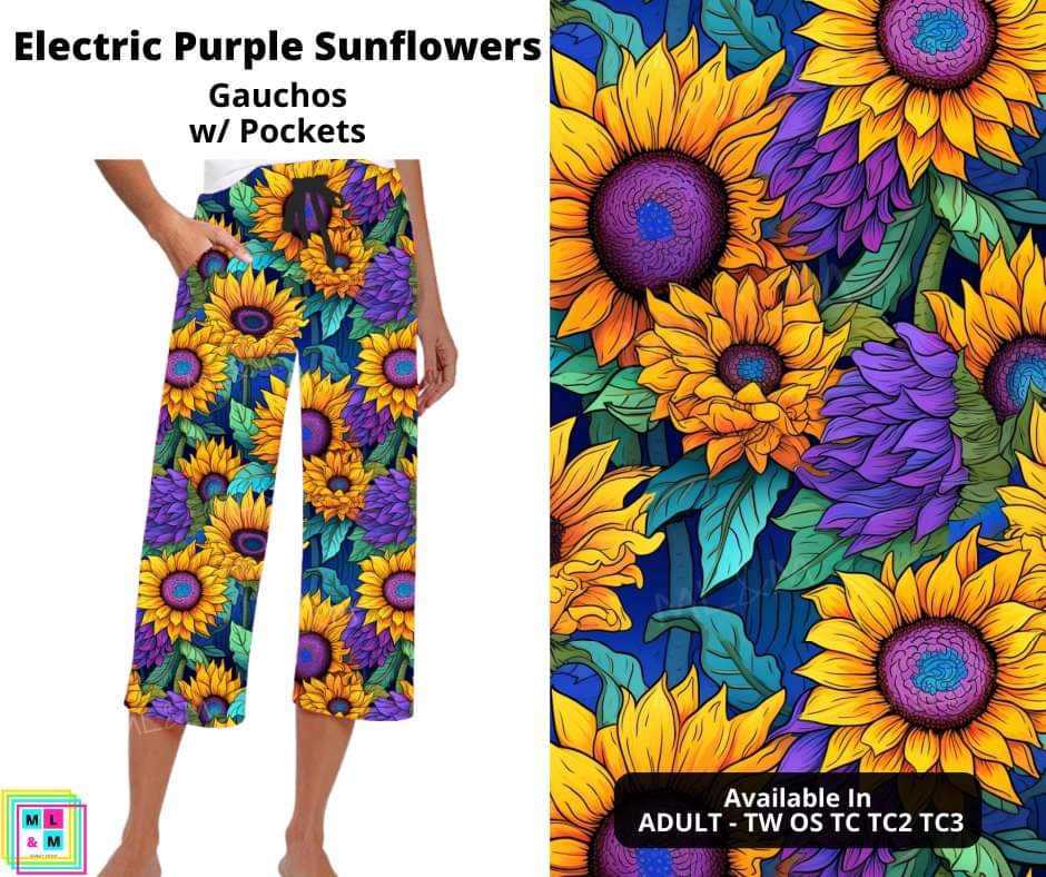 Electric Purple Sunflowers Capri Gauchos