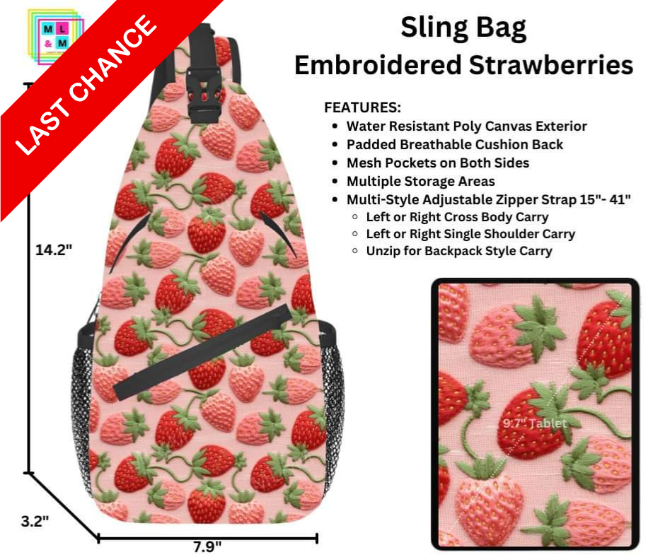 Embroidered Strawberries Sling Bag