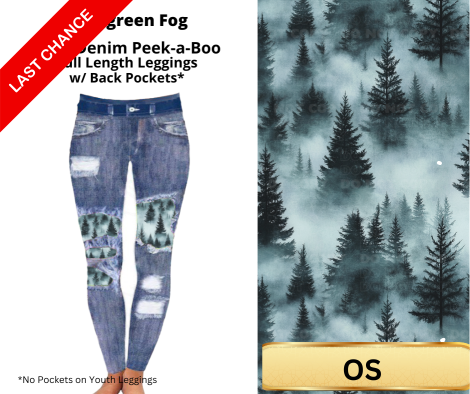 Evergreen Fog Faux Denim Full Length Peekaboo Leggings